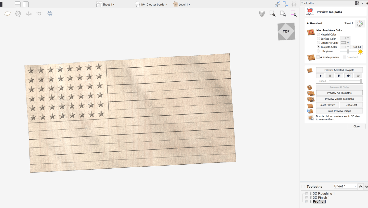 Capture the look and spirit of the World War II era with this detailed 48-star American flag relief. Modeled with realistic wave motion, crisp stars, and clean stripe transitions, this file set is designed for smooth toolpaths and professional-grade carving results.