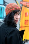 Shown in Malabrigo Arroyo shades ‘Flama’ & ‘Chircas’ [335yd/306m per 100g; 100% Superwash Merino]Shown in size 22in/56cm on model with 21.75in/55.25cm circumference head
