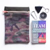 This fully lined, long zippered pouch is perfect for mobile phone, Kindle, camera., etc. It can also be used as a cosmetics pouch, a handy pouch for miscellaneous items that will be easily lost in the bag.