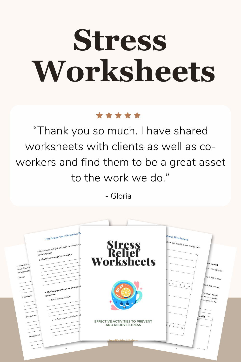 Each worksheet is designed to provide practical guidance and emotional support, helping you develop skills to manage stress effectively and maintain balance in your daily life.