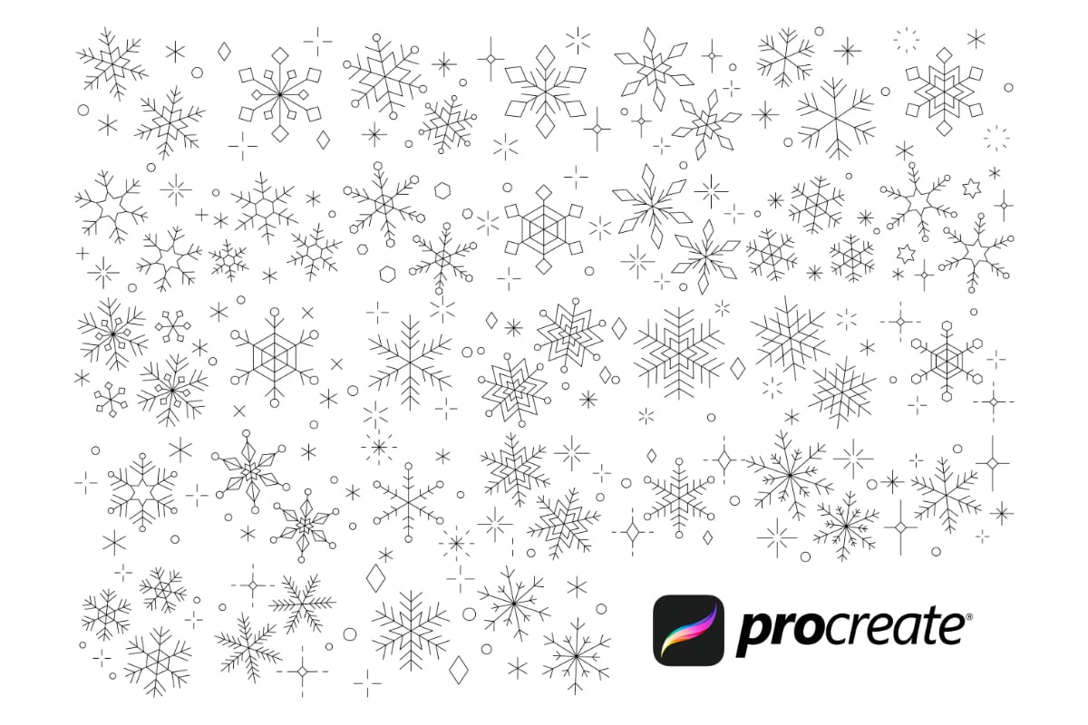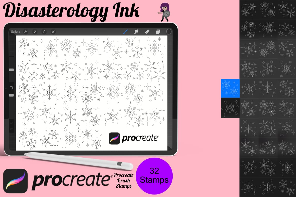 - 32 Christmas Winter Snowflake stamps for Procreate