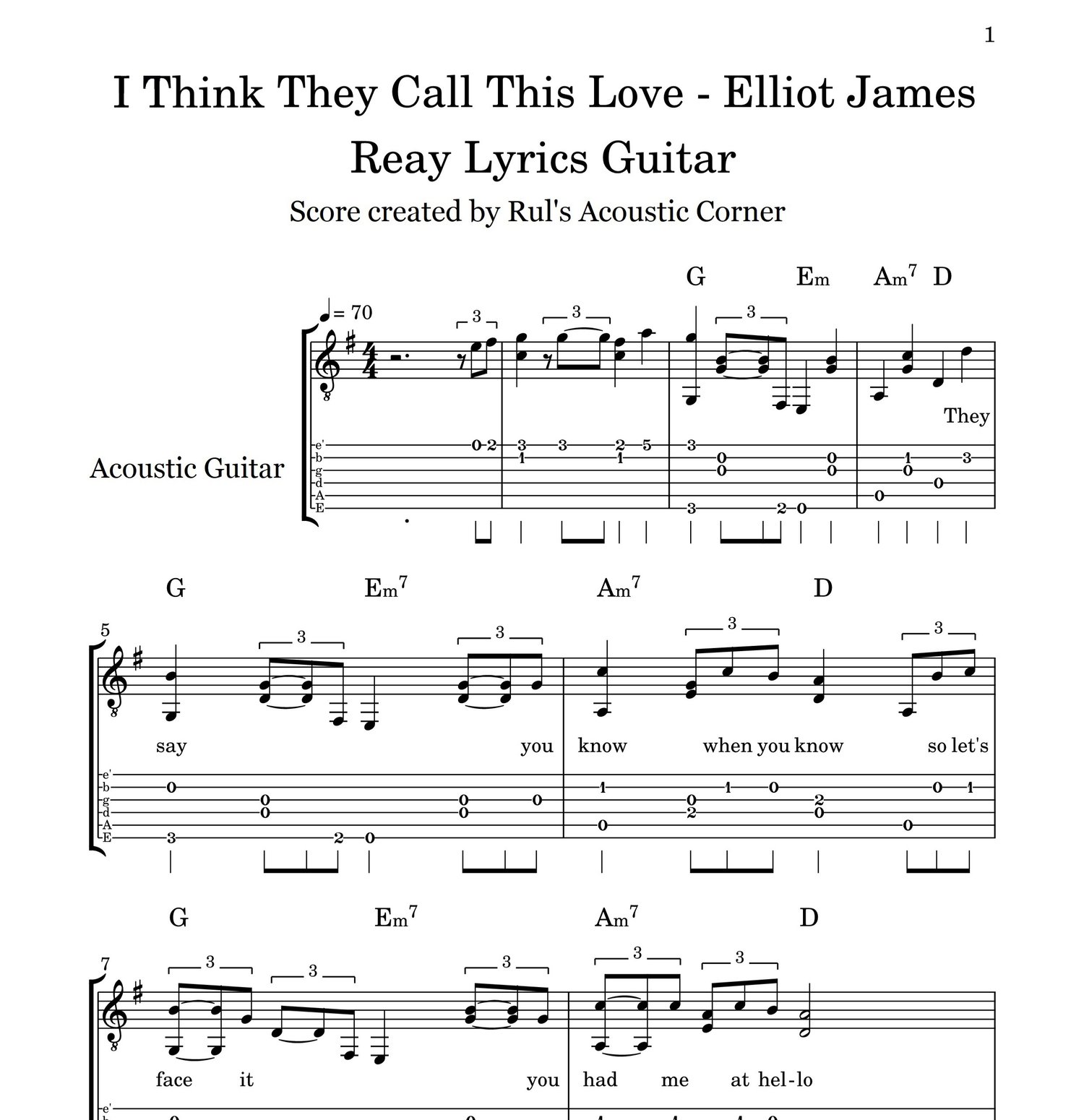 This instrumental I Think They Call This Love by Elliot James Reay lyrics guitar tabs arrangement + Chords + lyrics Pdf + Video (play slowly)