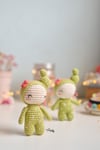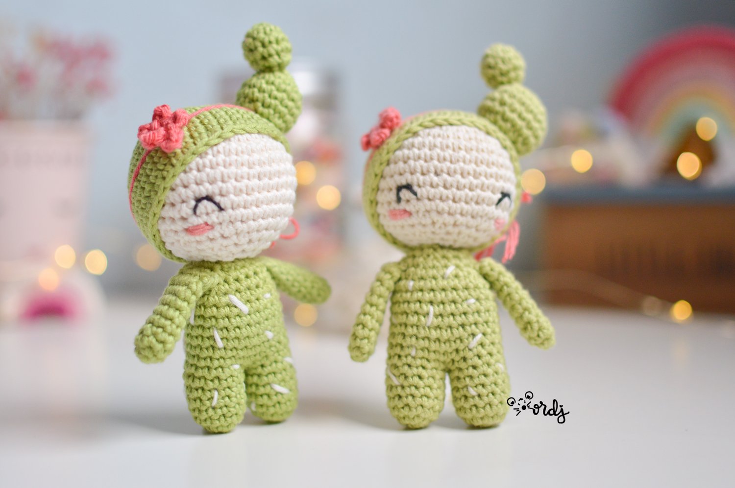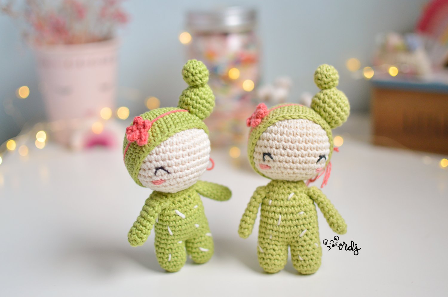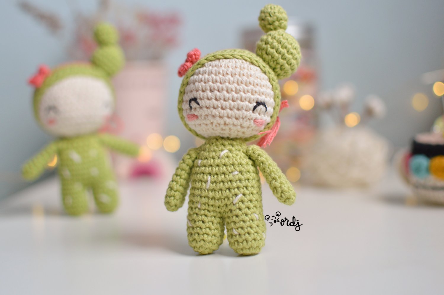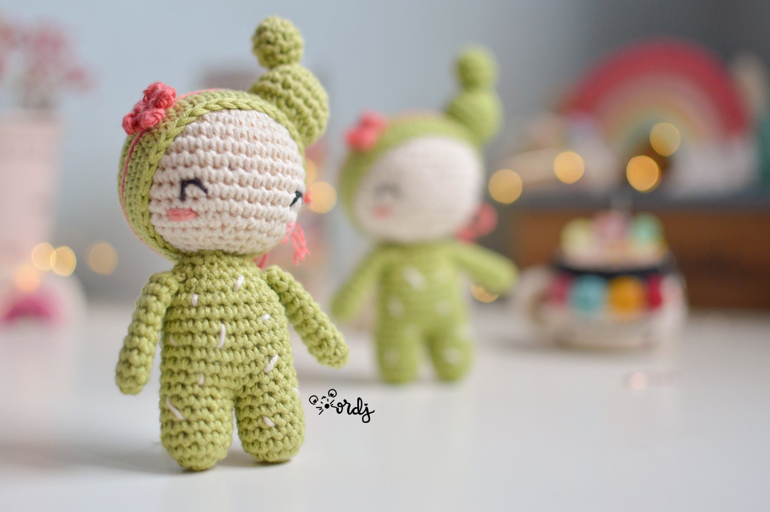 Patrón amigurumi o guía de tejido para tejer Cacturela, la niña cactus. El patrón está disponible en Español e Inglés (U.S. Terms).