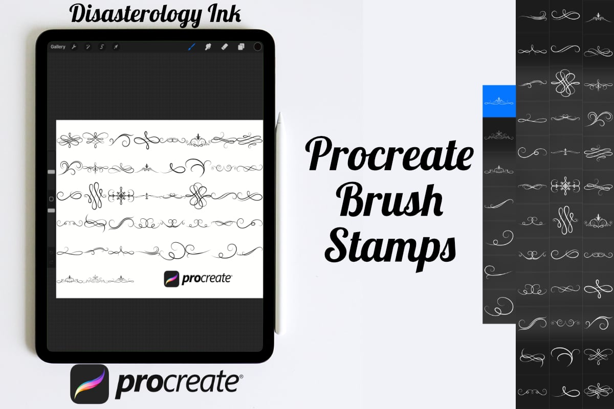 Ornate Border Swirls Set 1 Procreate Brush Stamps, 43 Swirls