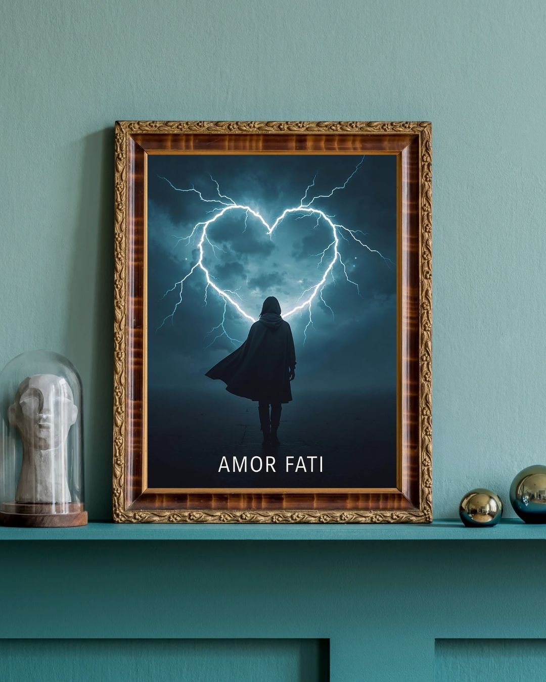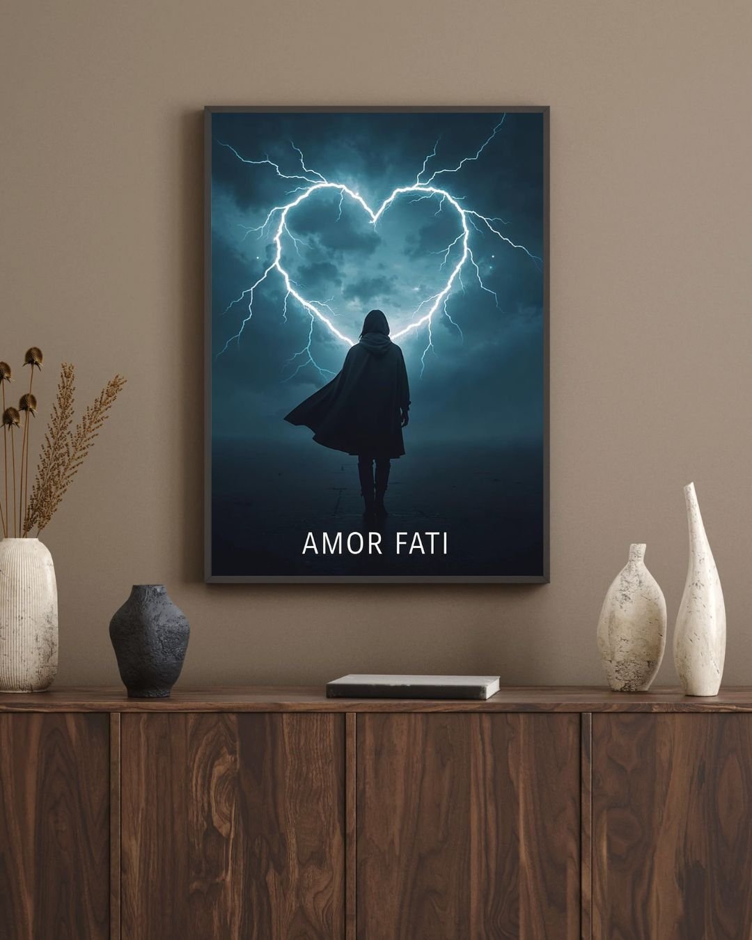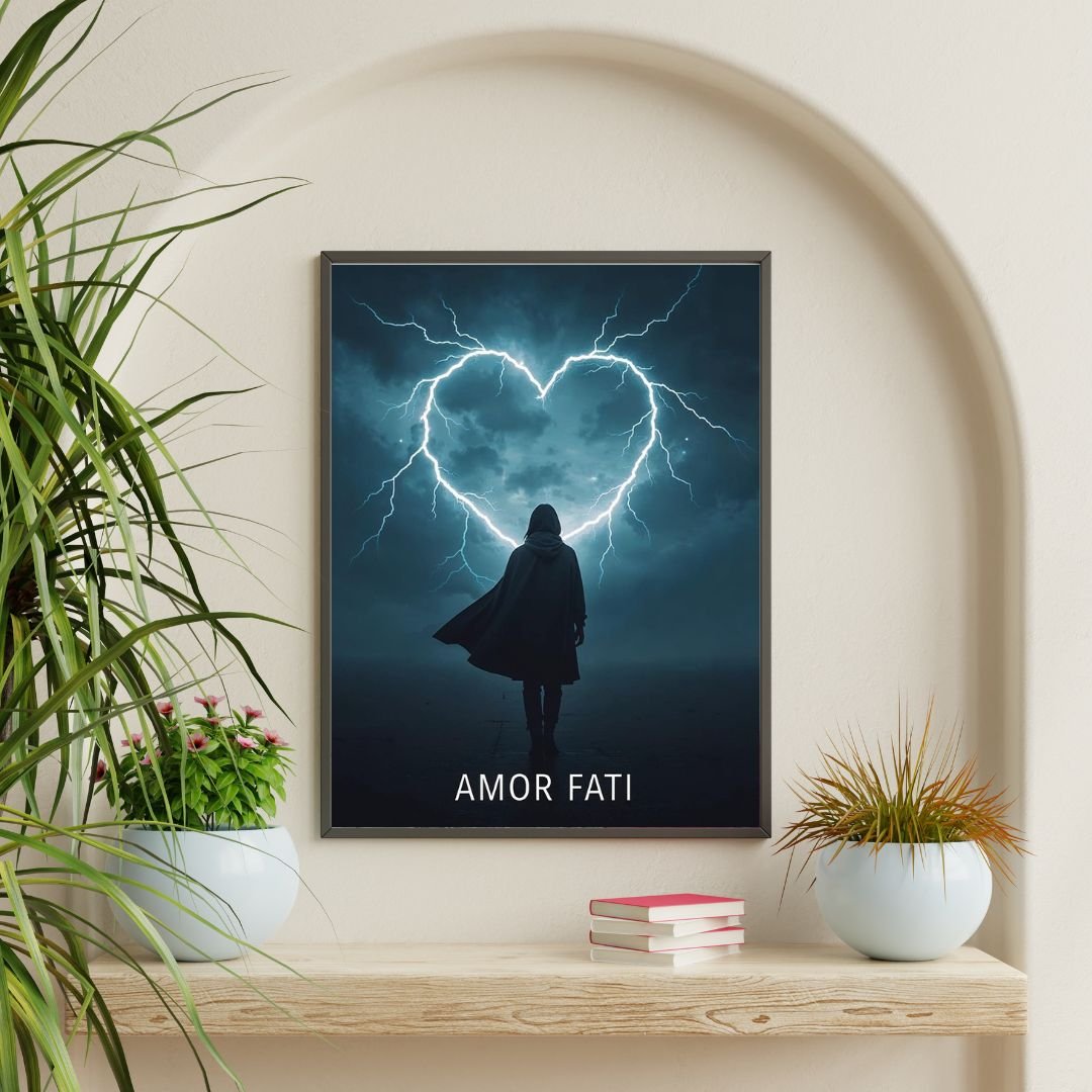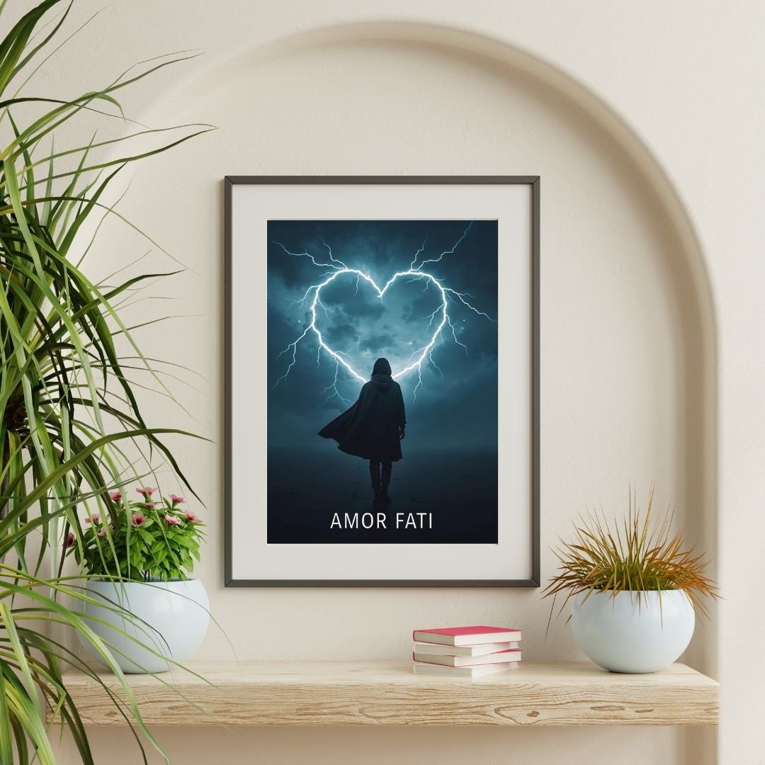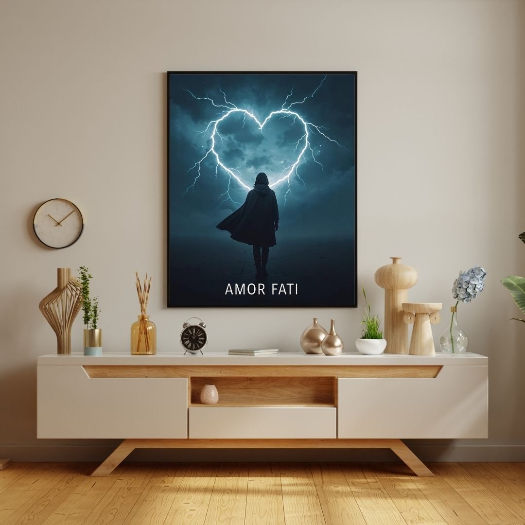 This artwork is inspired by the timeless Stoic teaching of Amor Fati — “love your fate.” The heart-shaped lightning igniting the night sky reflects the beauty of embracing life’s storms as part of our journey. It is a quiet reminder that even challenges hold meaning, and that acceptance brings resilience and peace.