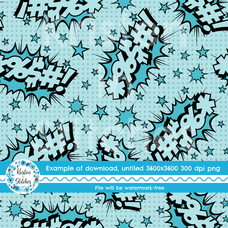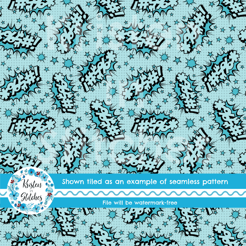 Comic Expletives Seamless Pattern, Pretty Profanities, Swear Word Bombs