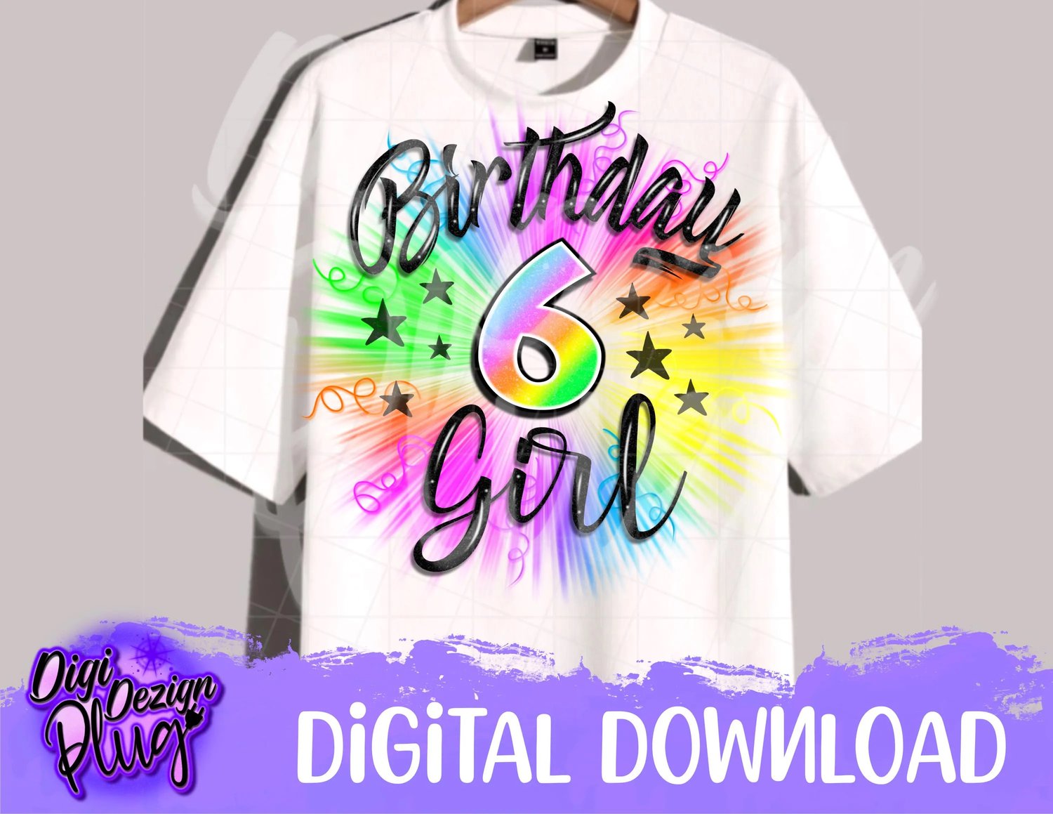 6th Birthday Girl Airbrush Png- 6th Birthday Png-Sixth Birthday Png- 6 years old- Airbrush Birthday Png- Girl Birthday Png- Digital Download