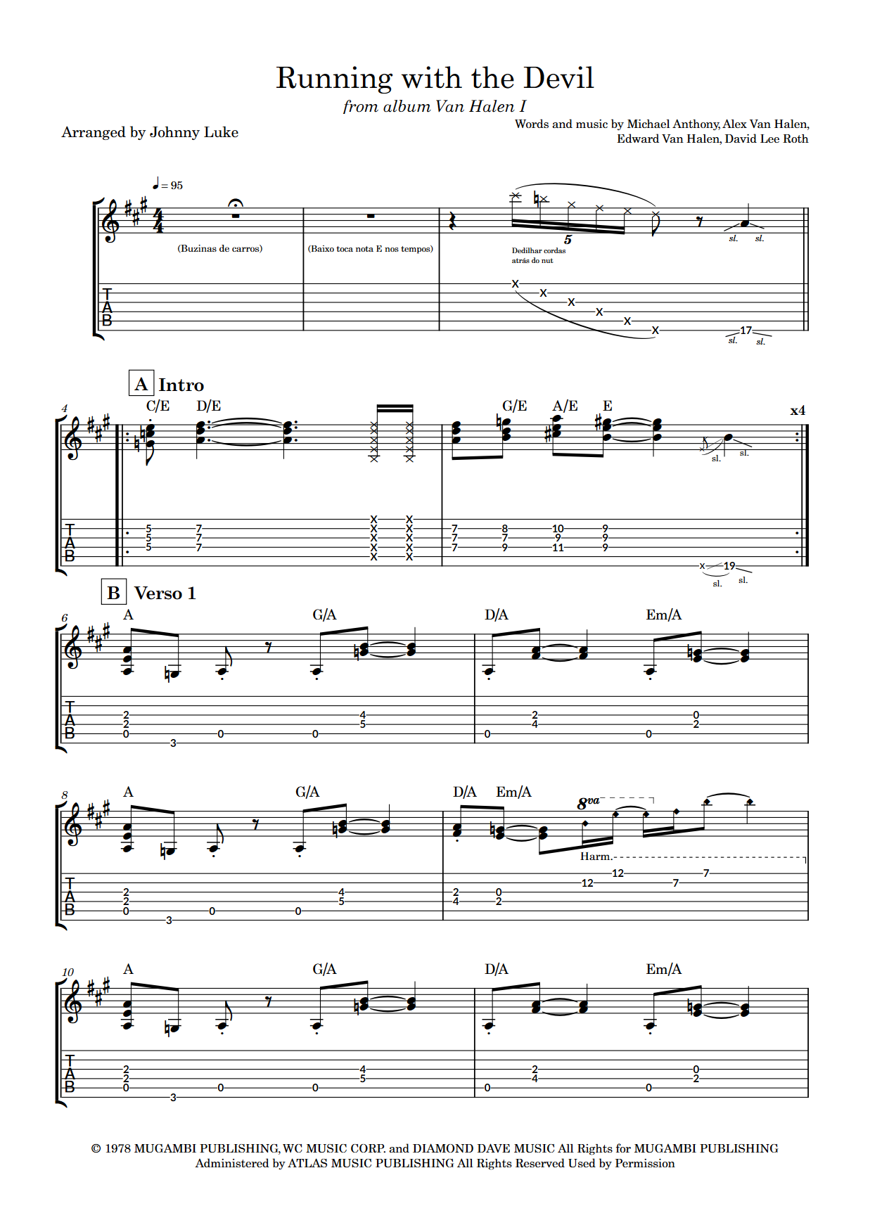 "Runnin' with the Devil", de Van Halen, escrita para Guitarra na afinação Standard. Tablatura e notas incluídas.
