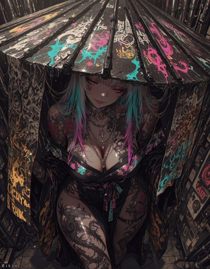 Step into a dark cyberpunk world with this premium collection of 6 ultra-detailed anime wallpapers. Each artwork features a mysterious neon-haired anime girl with intricate tattoos, dramatic lighting, and a futuristic graffiti aesthetic.