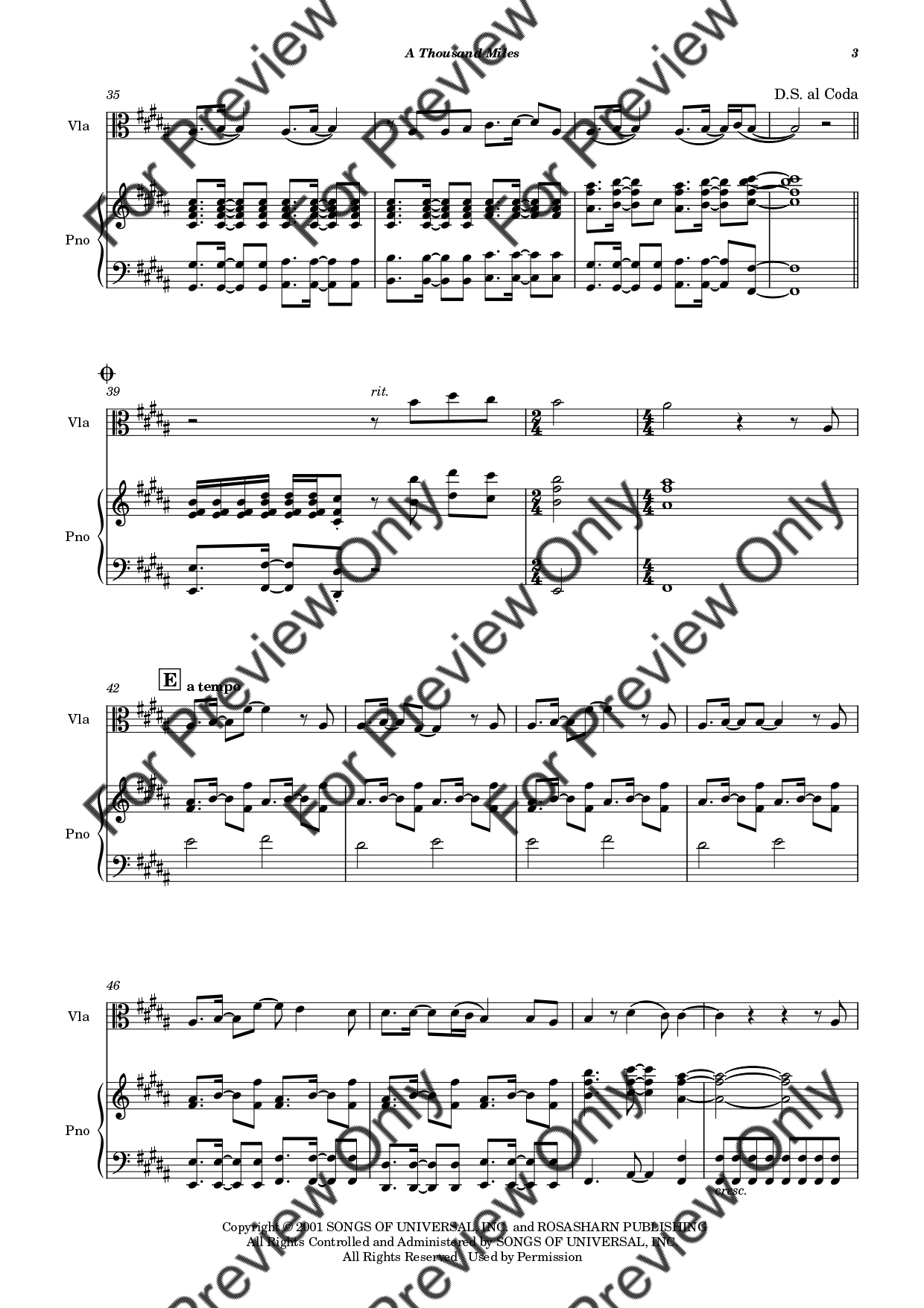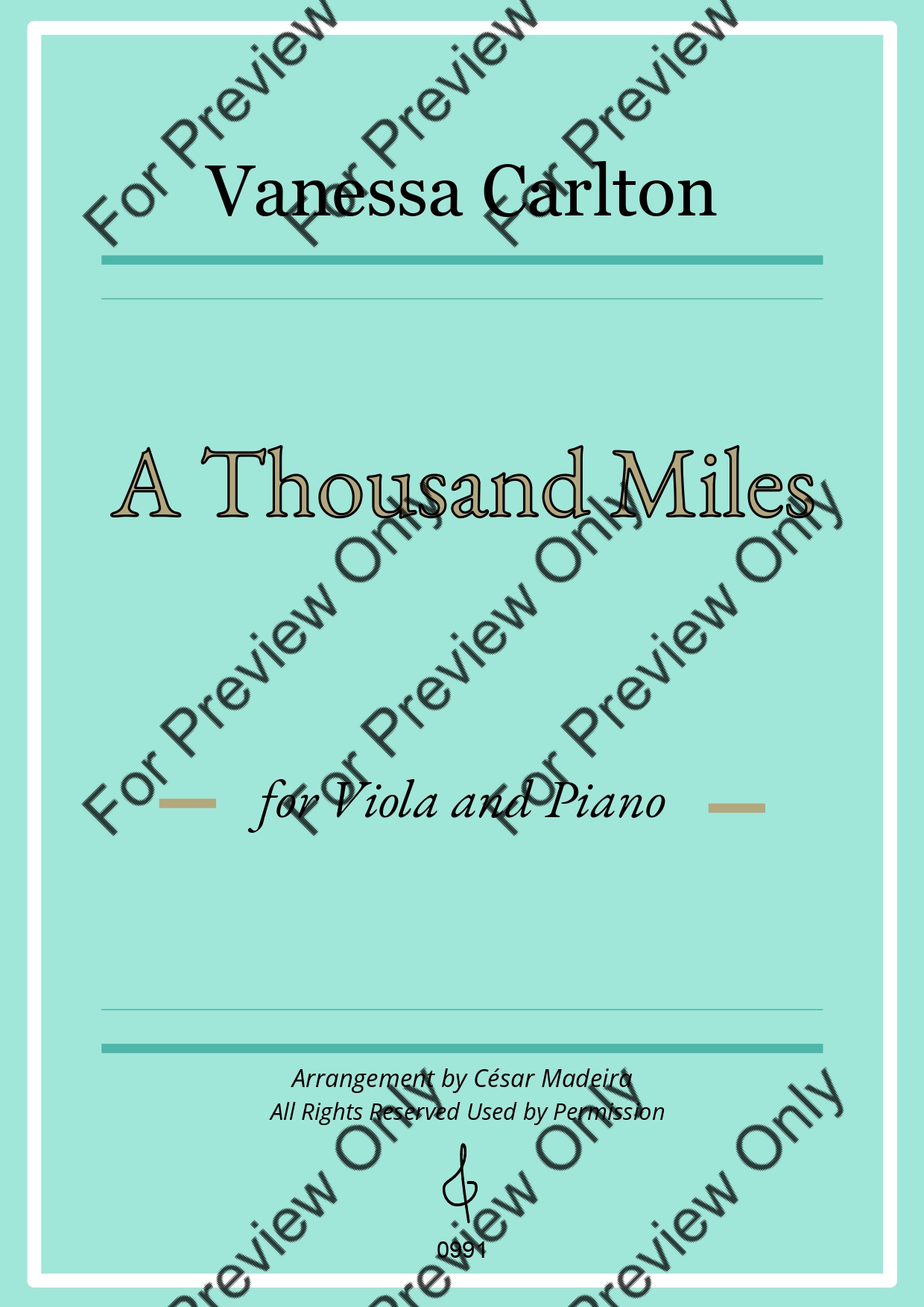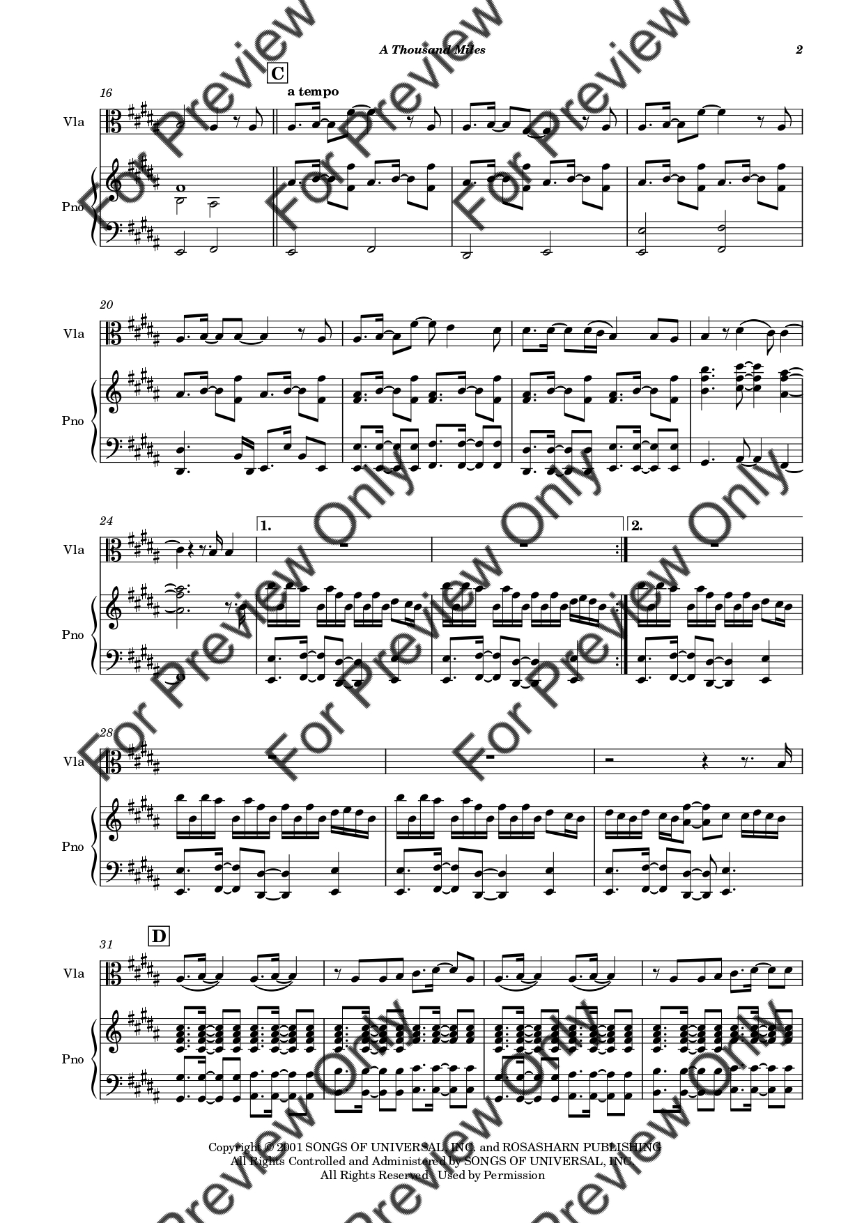 A Thousand Miles by Vanessa Carlton. Arrangement for Viola and Piano. With Full Score and Individual Parts. Have fun!