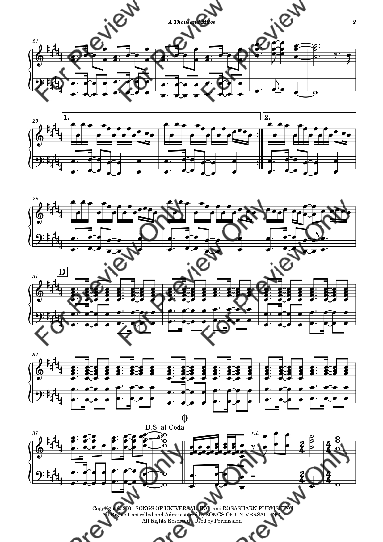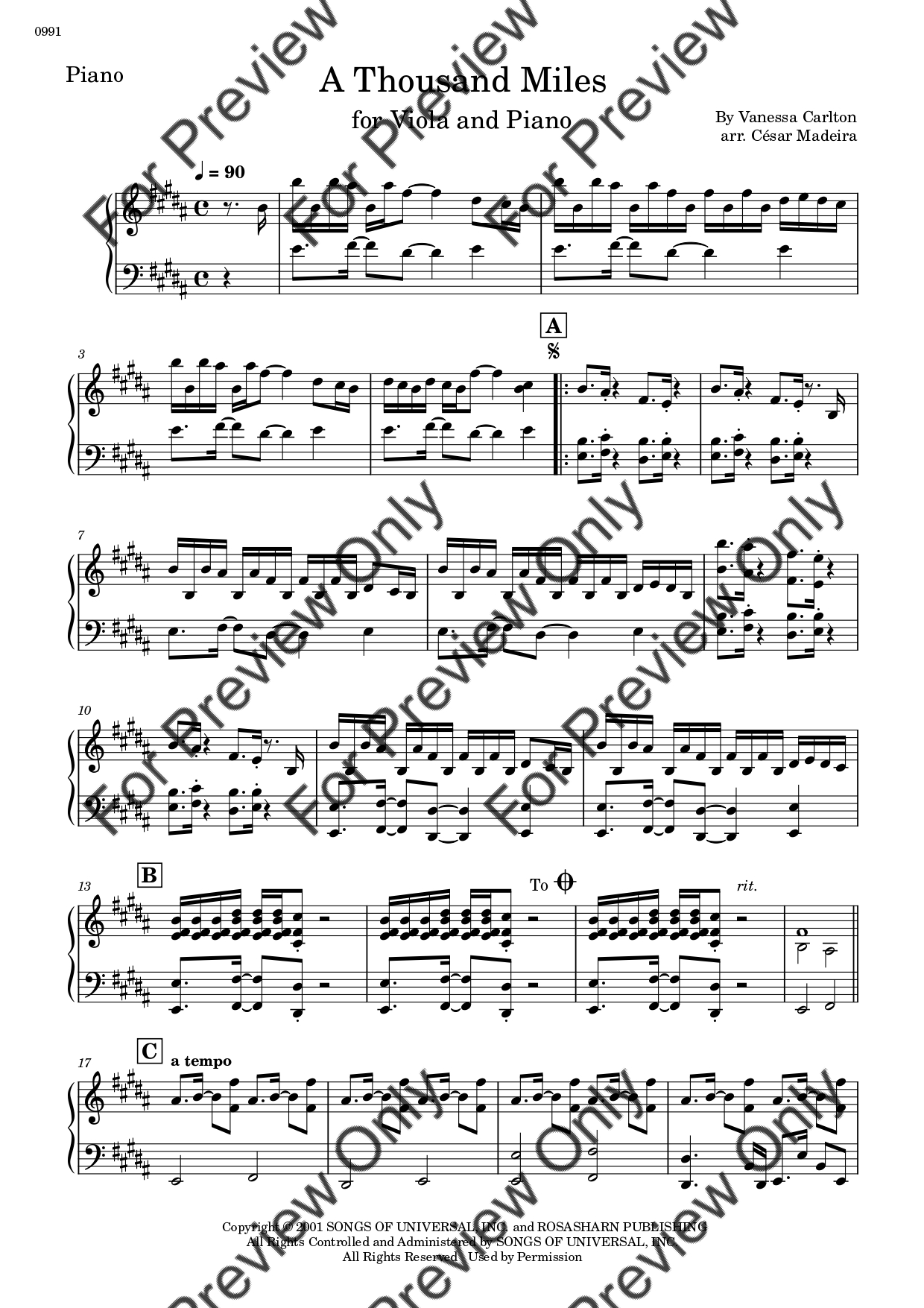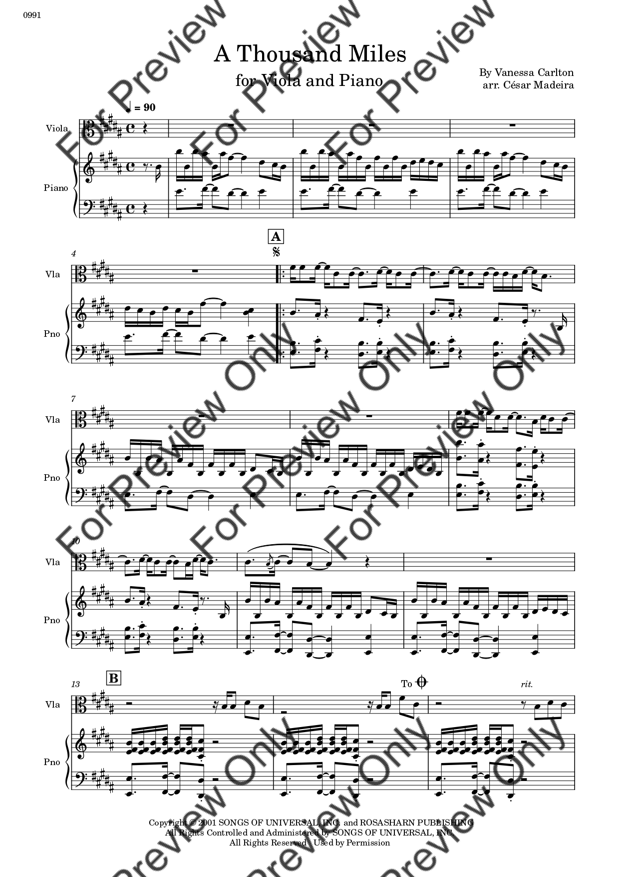 A Thousand Miles by Vanessa Carlton. Arrangement for Viola and Piano. With Full Score and Individual Parts. Have fun!