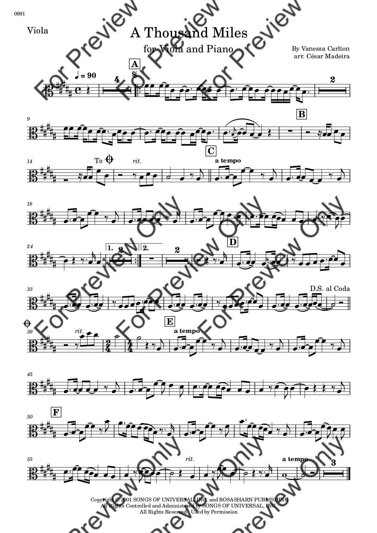 Carlton - A Thousand Miles - Viola and Piano