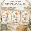 Printable Greeting Card Set Girl Bunny Vintage Style 5x7 Instant Download