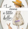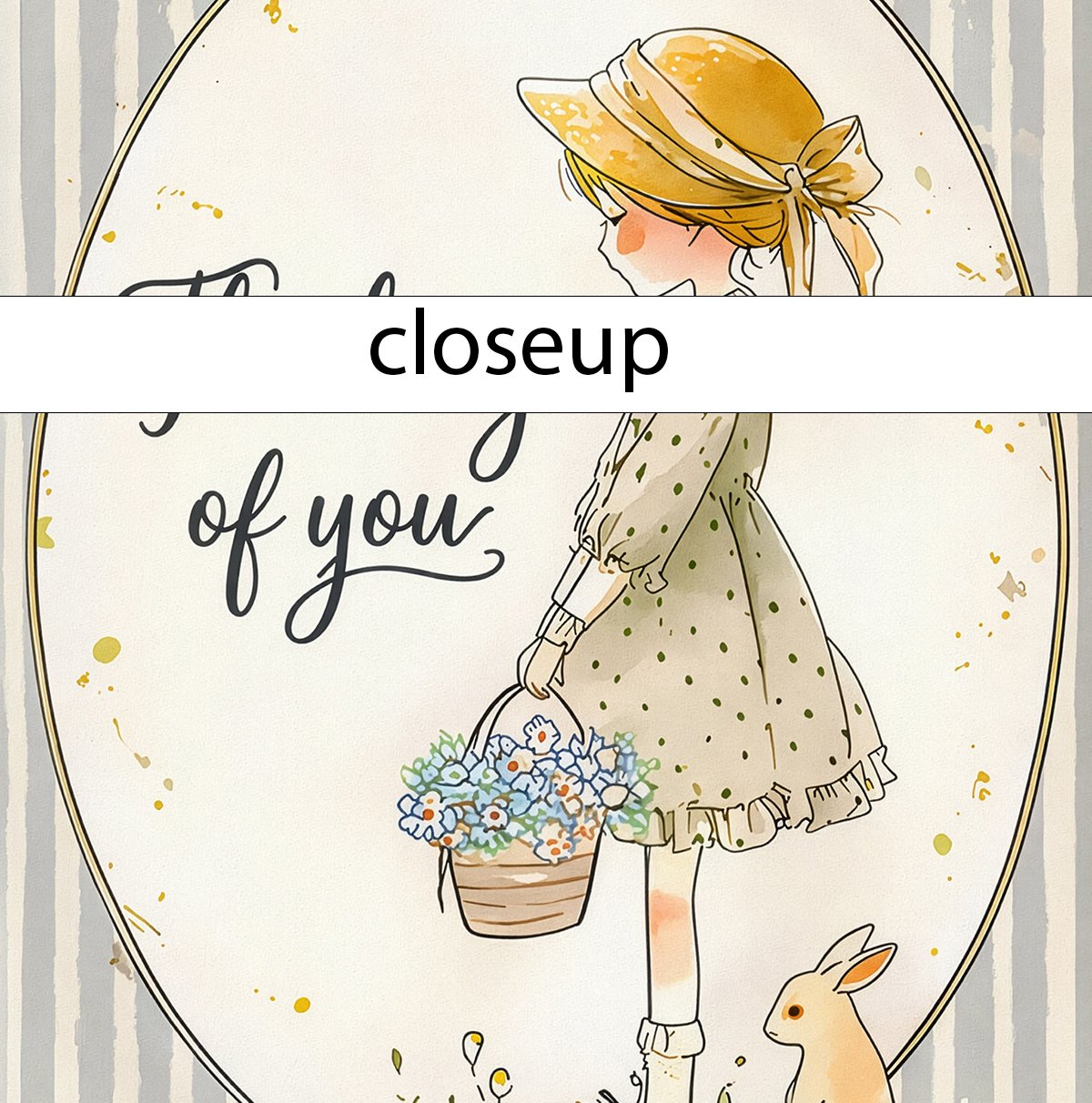 printable card set, bunny greeting card, vintage girl card, 5x7 printable, thinking of you card, with love card, hello card printable, instant download card, cottage style card, soft aesthetic card, spring greeting card, floral bunny card, storybook card