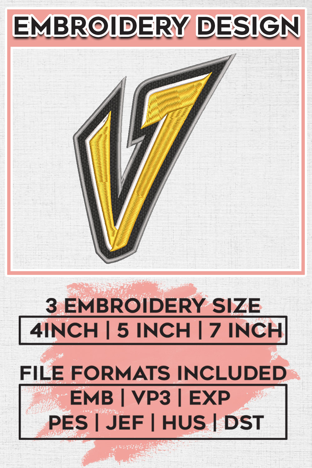 Idaho Vandals College Football Team V Letter Logo Embroidery Designs, NCAA Idaho Vandals Machine Embroidery Files, NCAA Logo embroidery designs, NCAA Vandals Logo, Digital Download
