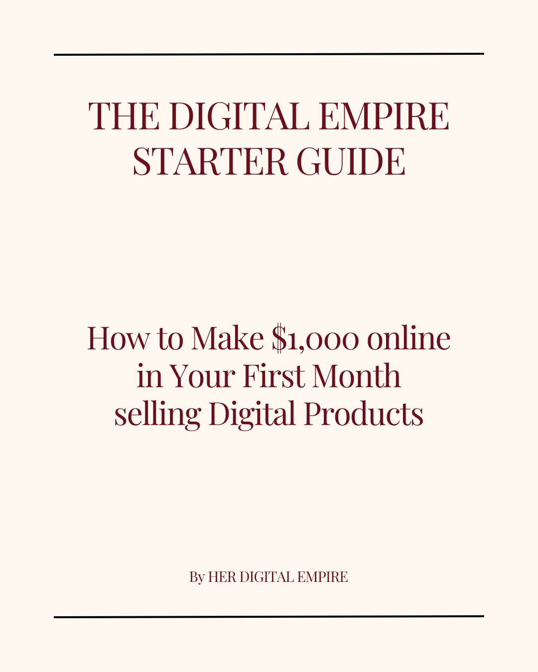 This beautifully designed 17-page guide will walk you through every step of creating your first digital product, setting up your store, and growing your online income to $1,000 online in your first month.