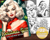 22 Christmas Gals Beautiful Women, Hair, holiday Coloring Page Book, Adults + kids Instant Download - Grayscale Coloring, Printable PDF