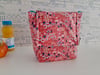 This pattern is designed to be sewn with waterproof fabrics such as laminated cotton which is simply cotton with a polyurethane coating. It is easy to sew, wipe clean, washable and resilient, making it ideal for lunch bags or any item that requires frequent cleaning. It is also more environmentally friendly than traditional oilcloths or PVC coated fabrics minus potentially harmful dyes or chemicals such as lead, BPA or phthalates. Some laminated cottons are also certified as food safe.