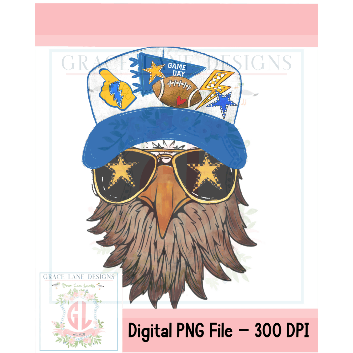 BLUE YELLOW EAGLE Trucker Hat png Hand Drawn Procreate Digital Download Tailgate Football Game Cheerleader