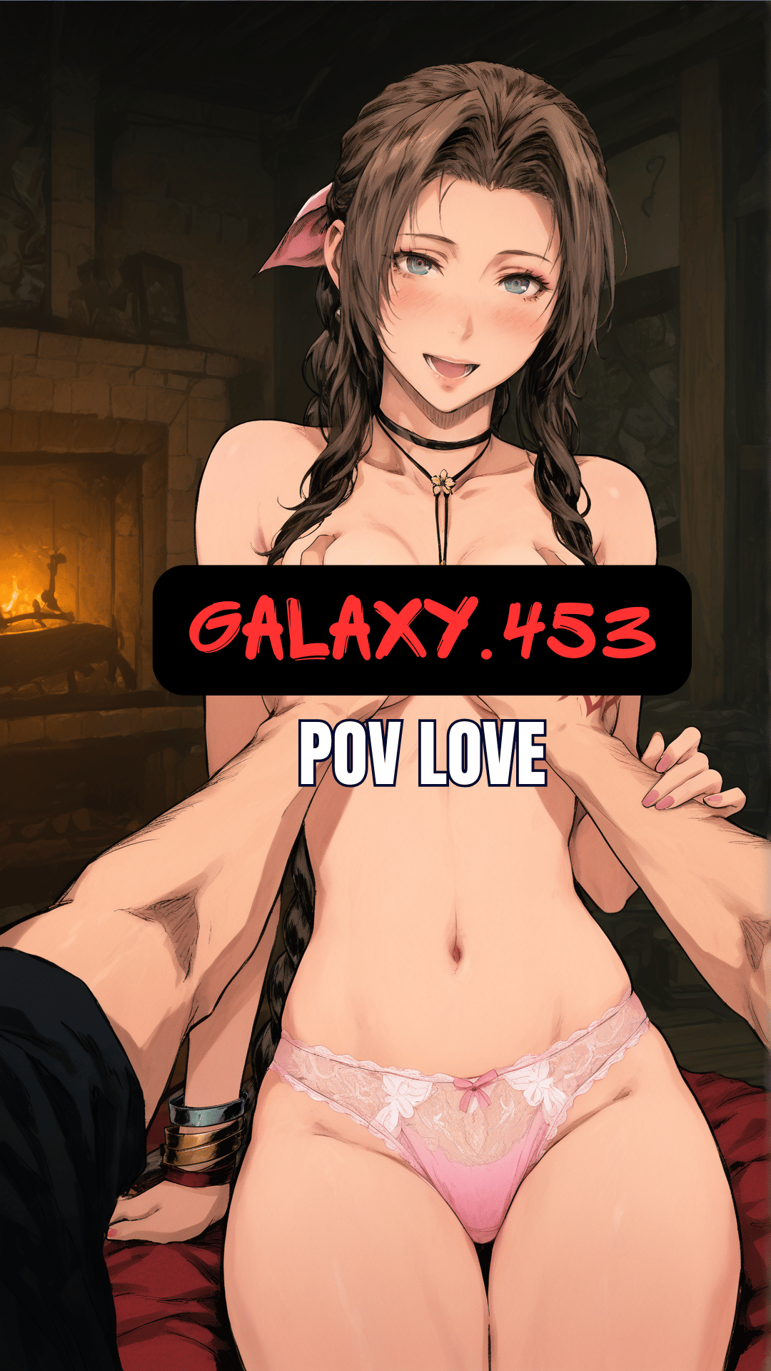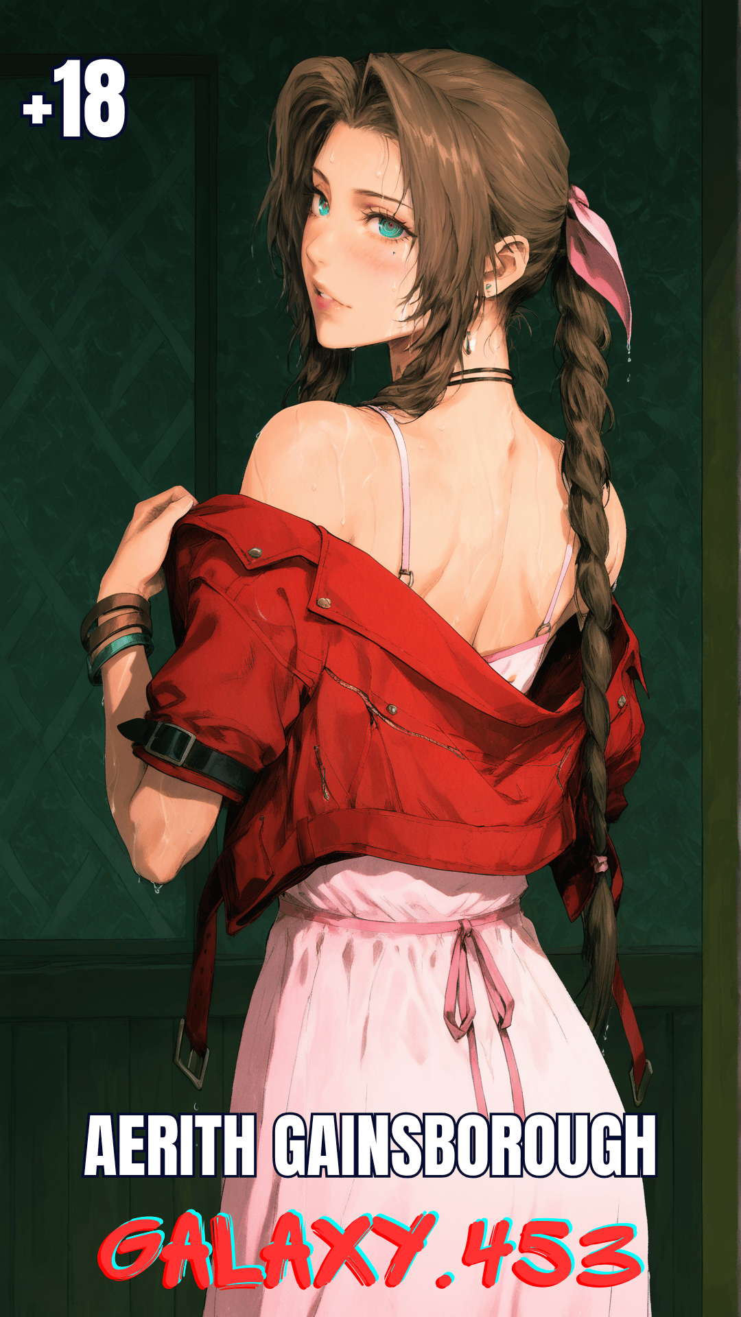 This immersive image set places you inside a calm and intimate encounter with Aerith Gainsborough, sheltered from the rain in a secluded cabin.