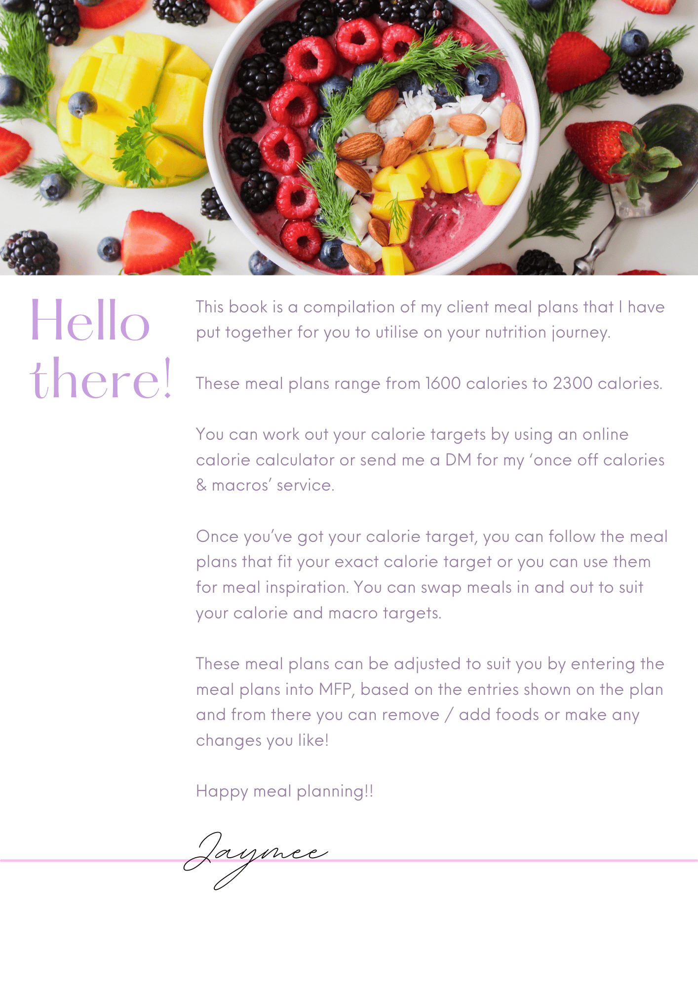 Inside you will find 32 sample meal plans that I have compiled from my nutrition coaching clients, to support you on your nutrition journey.