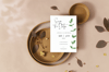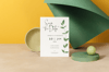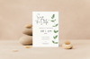 A wedding save the date invitation card with elegant calligraphy and sage green leaves. Easy to edit and customize. Will suit many themes of wedding.