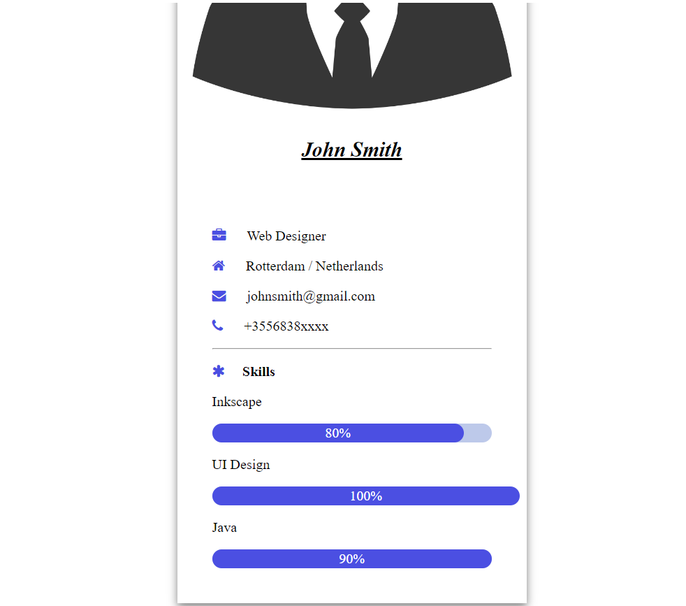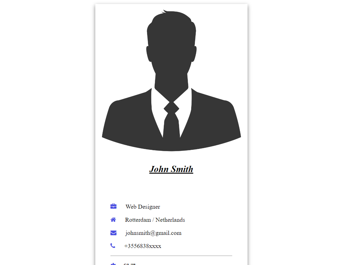 Introducing our Profile Person Design – a stunning HTML and CSS creation tailored for showcasing essential profile data with elegance and clarity. Seamlessly display vital information such as name, email, phone number, country, and skillset, all within a sleek, intuitive interface. With dynamic progress bars showcasing skill proficiency in percentages, viewers can quickly grasp expertise levels at a glance. Crafted with precision and style, this design is perfect for professionals looking to make a memorable impression online. Upgrade your profile presentation today with our Profile Person Design!