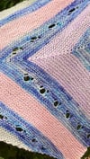 The Whimsical Dreams wrap is a quick, easy and fun to knit on US size 6 needles with soothing garter panels and easy to memorize lace panels paying tribute to a very special character.