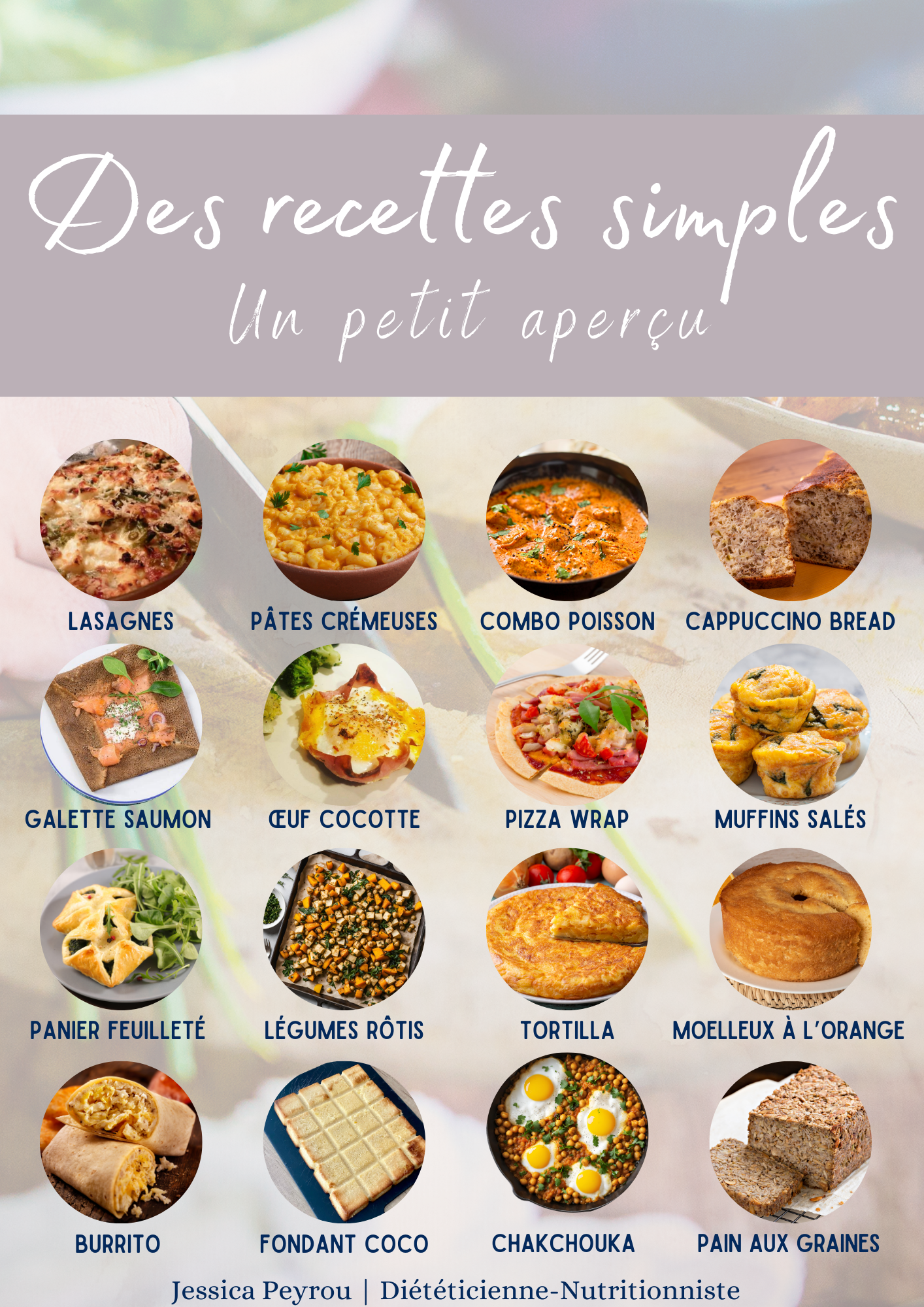 Toutes les recettes sont réalisées avec des ingrédients simples et accessibles, aucun produit spécifique n’est nécessaire.