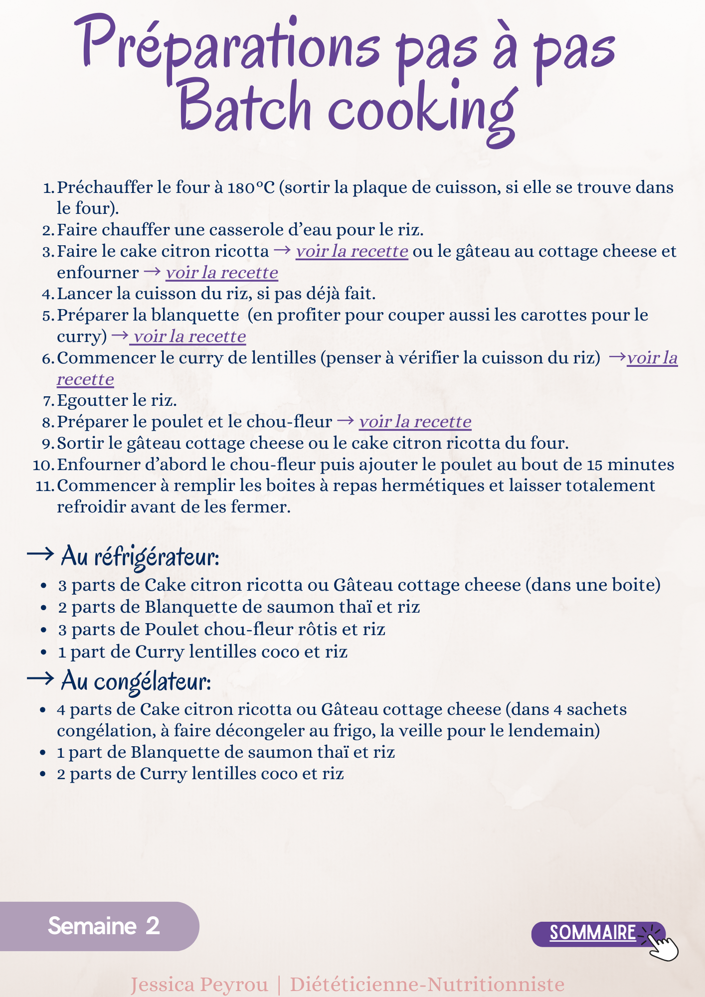 - 8 fiches pas à pas pour cuisiner en ~1h30/semaine