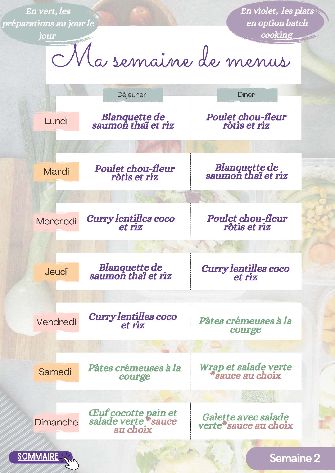 - Chaque semaine : 1 petit-déjeuner sucré et 1 salé pour plus de flexibilité
