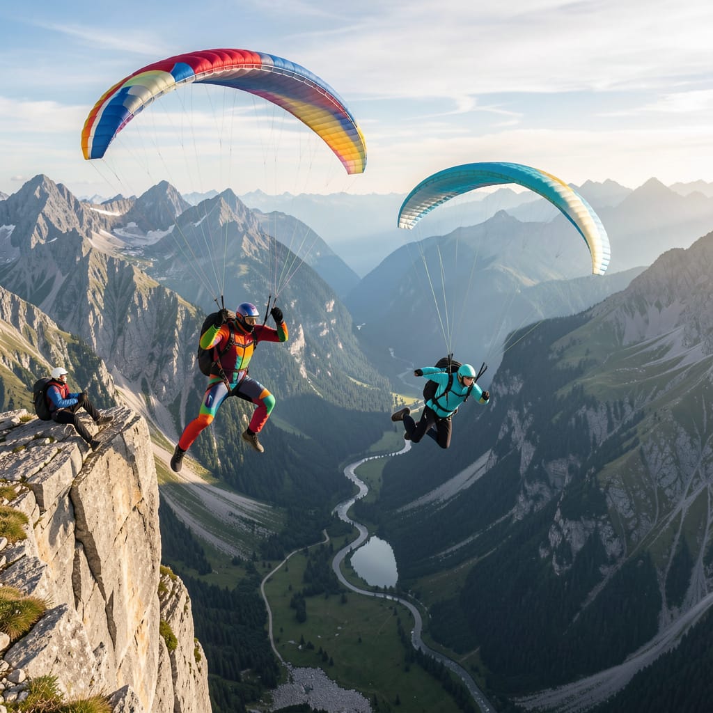 Those who enjoy high-risk, high-challenge activities might choose to go paragliding with friends. This is definitely not an activity that the average person can handle. Individuals must possess high agility, exceptional skill, great courage, excellent eyesight, a strong sense of direction, and composure under pressure to control the wind direction and speed of the paraglider. Only then can they overcome difficulties and avoid disaster or injury if problems occur! Those who participate in this activity are usually trained and it is absolutely not suitable for people without any training experience to participate in this high-risk high-altitude paragliding activity because the consequences can be very serious if it gets out of control!