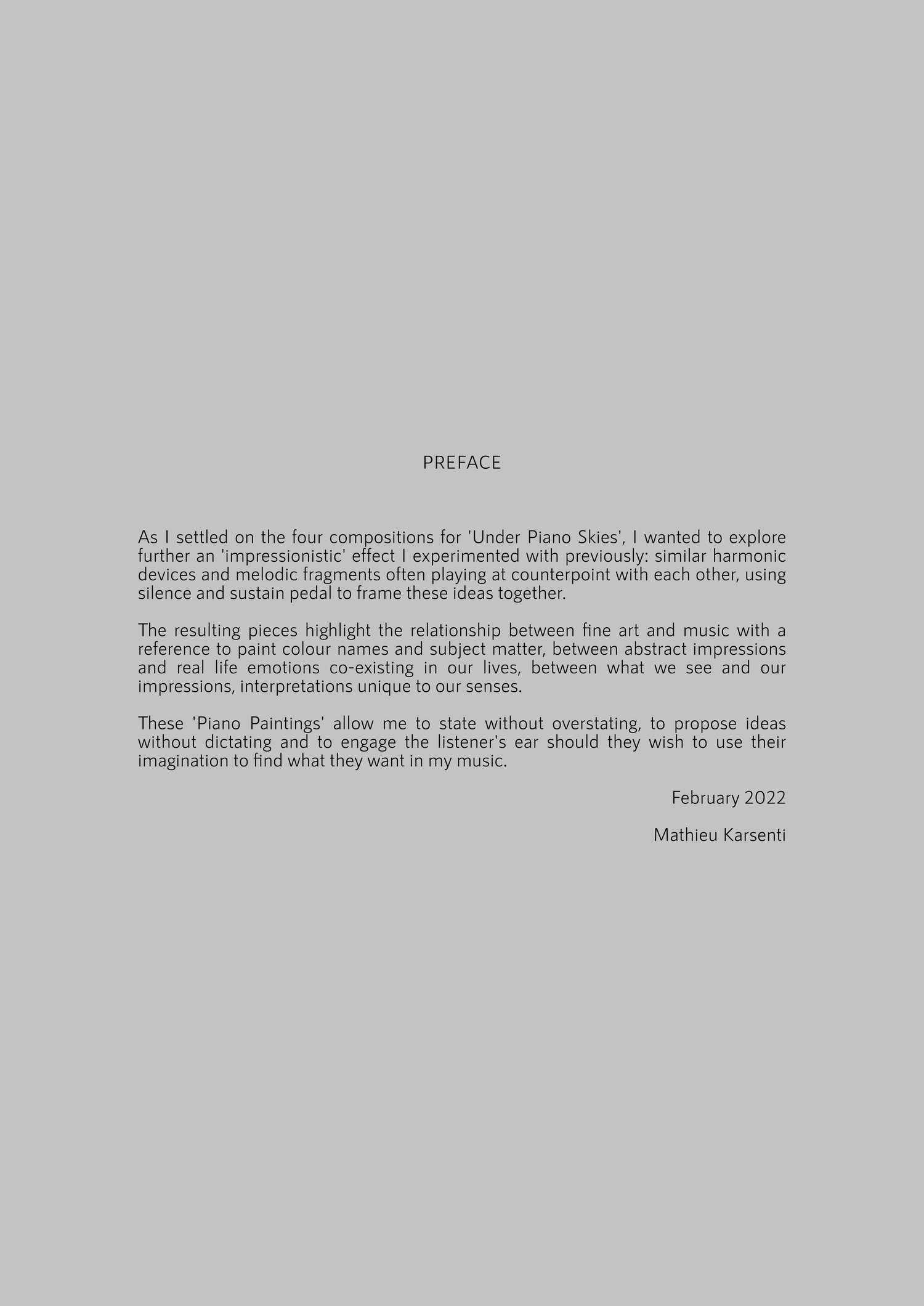 This complete collection scores pdf comprises of 21 pages of scores and 5 of cover, preface, list, acknowledgement and back cover, interspersed with 8 paintings.