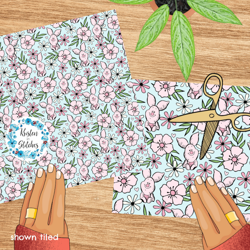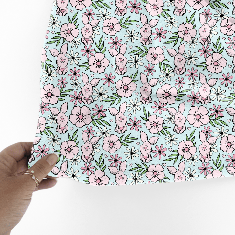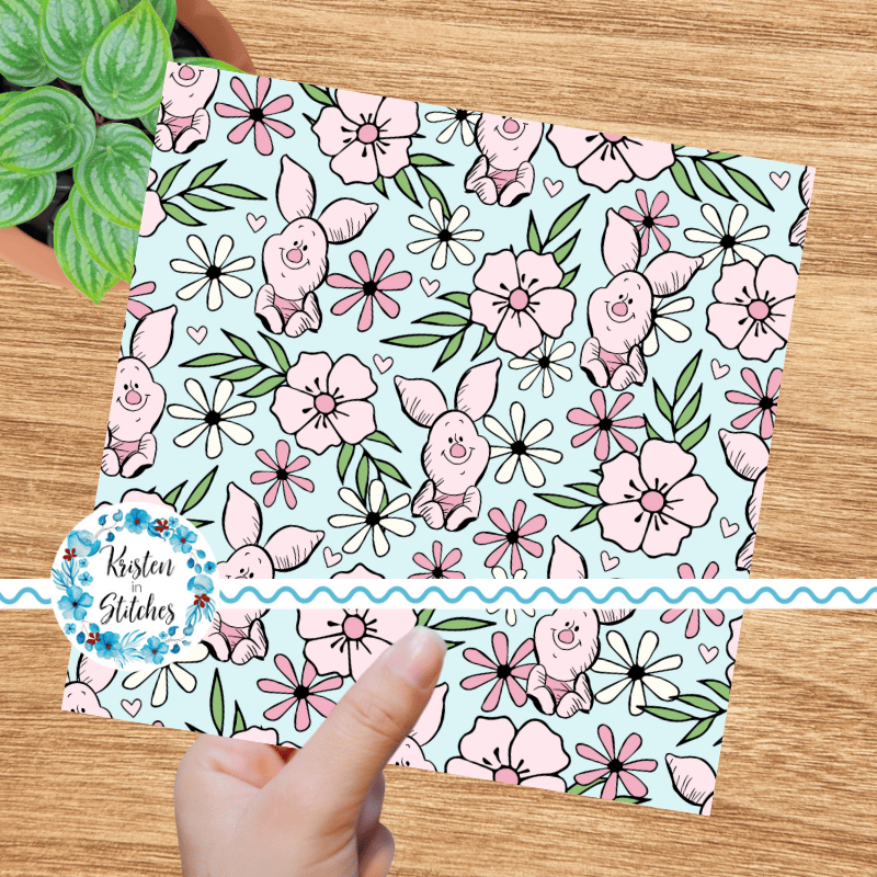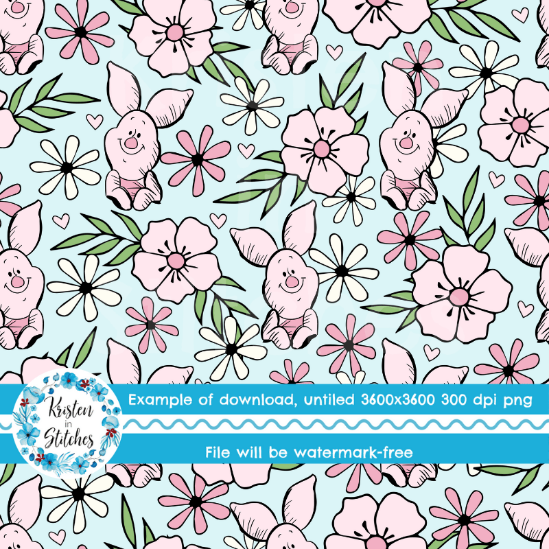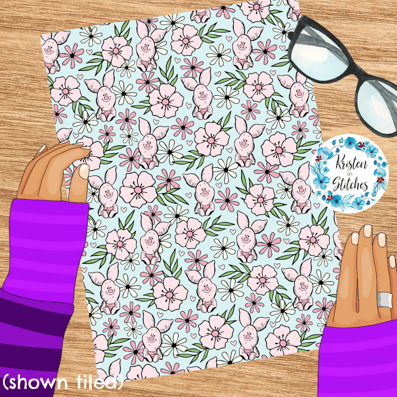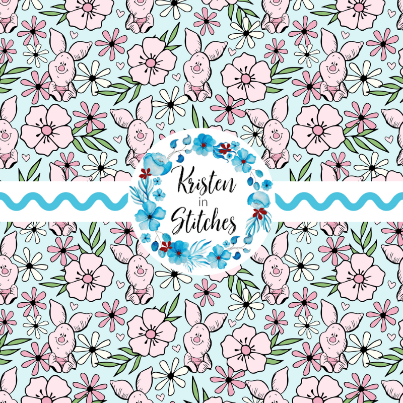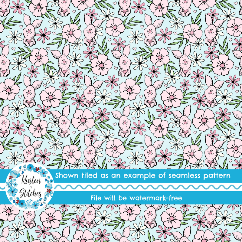 Piglet Floral Seamless Pattern, Classic Winnie the Pooh Nursery, Baby Blue
