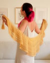 - Sample shawl: Cotton Wool Fingering from Peninsula Yarn (50% pima cotton, 50% sw merino; 3.5oz / 100g, 437yds / 400m) in color Gold, 1 skein