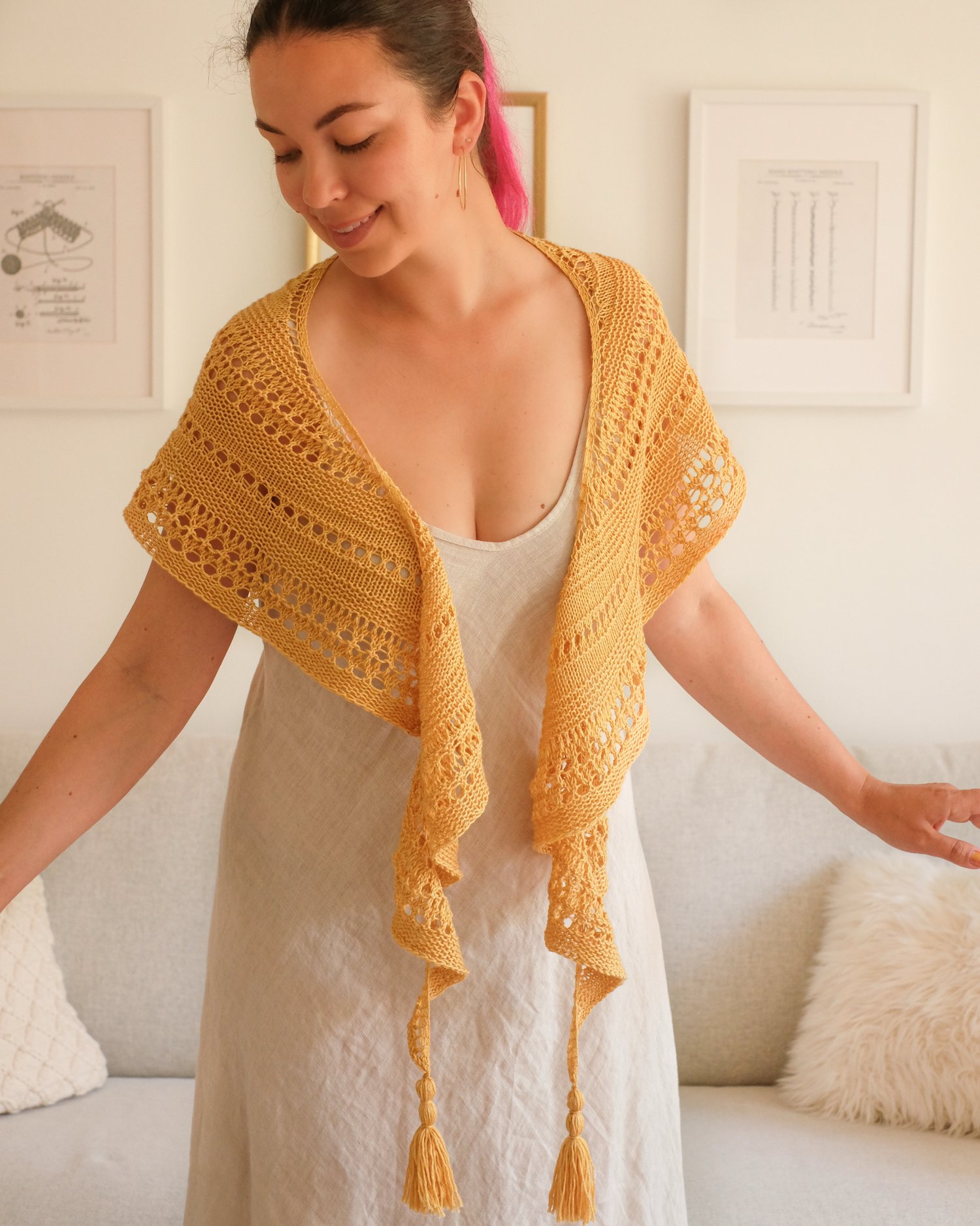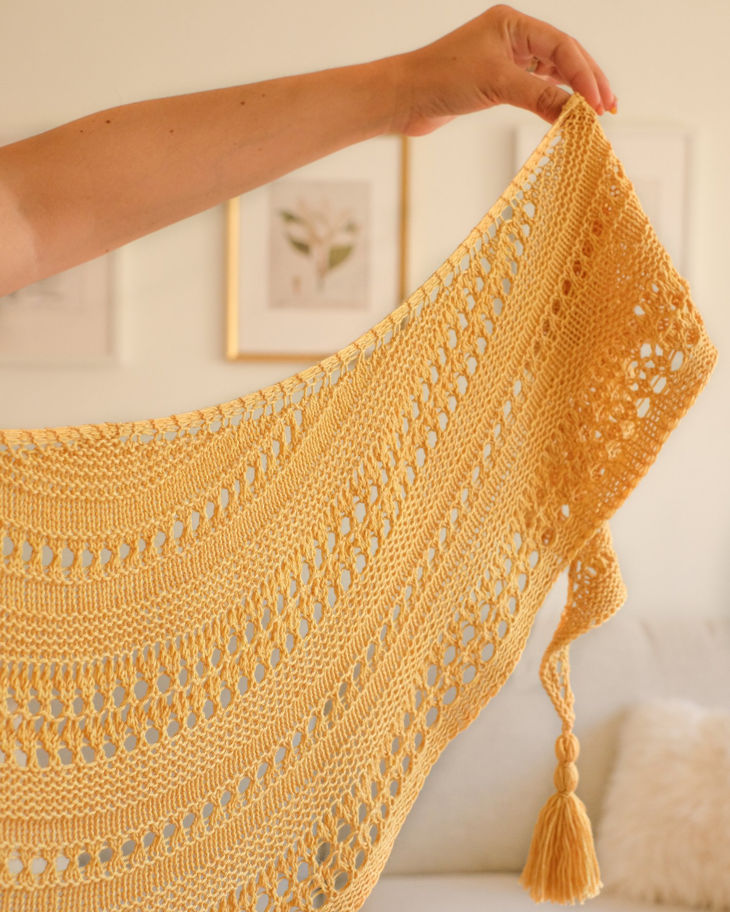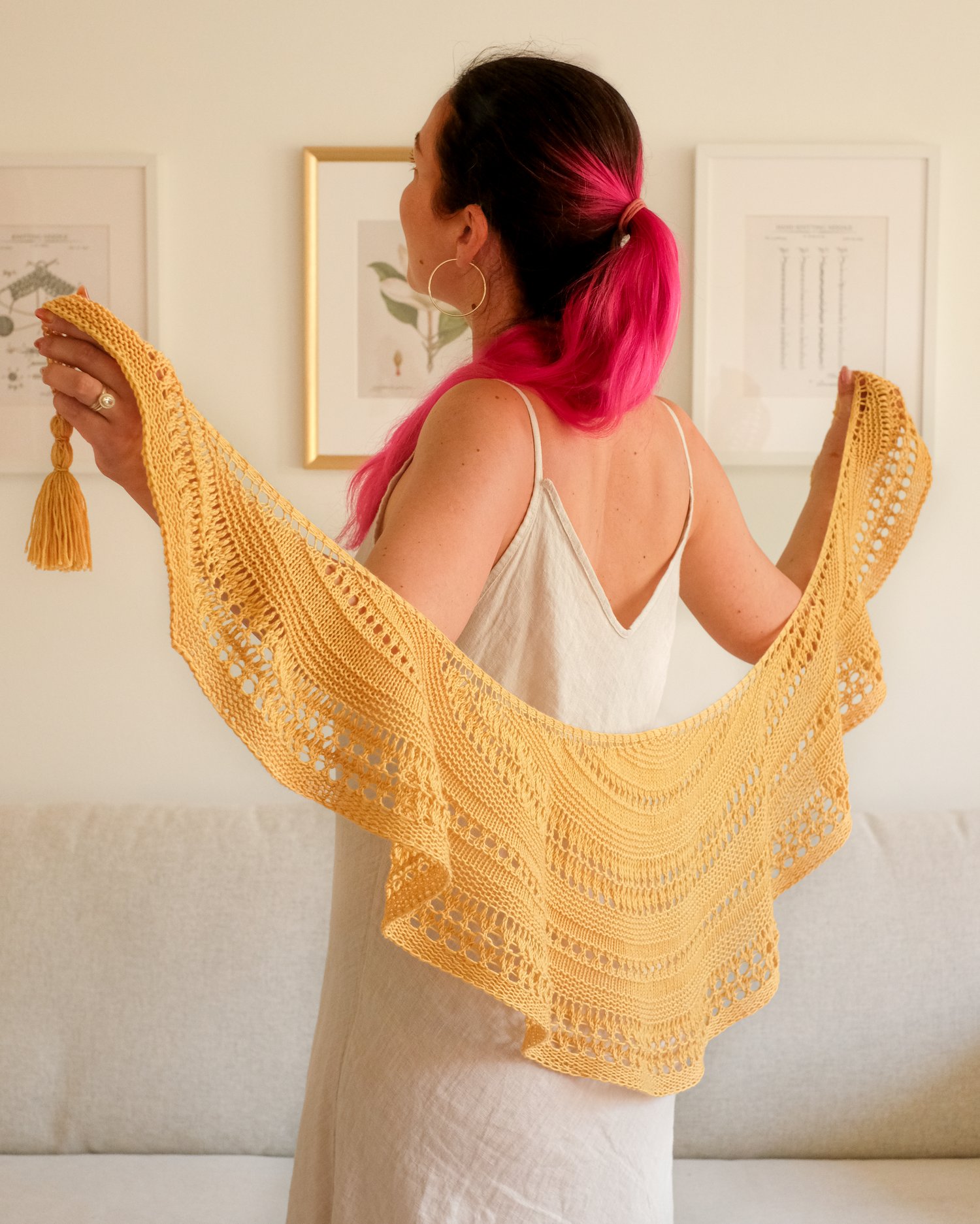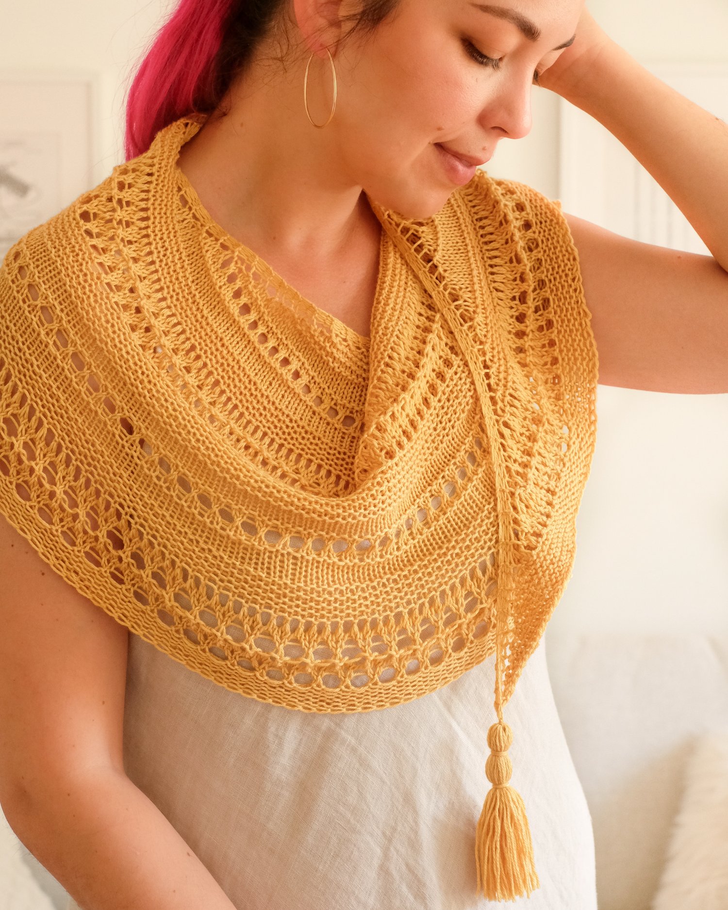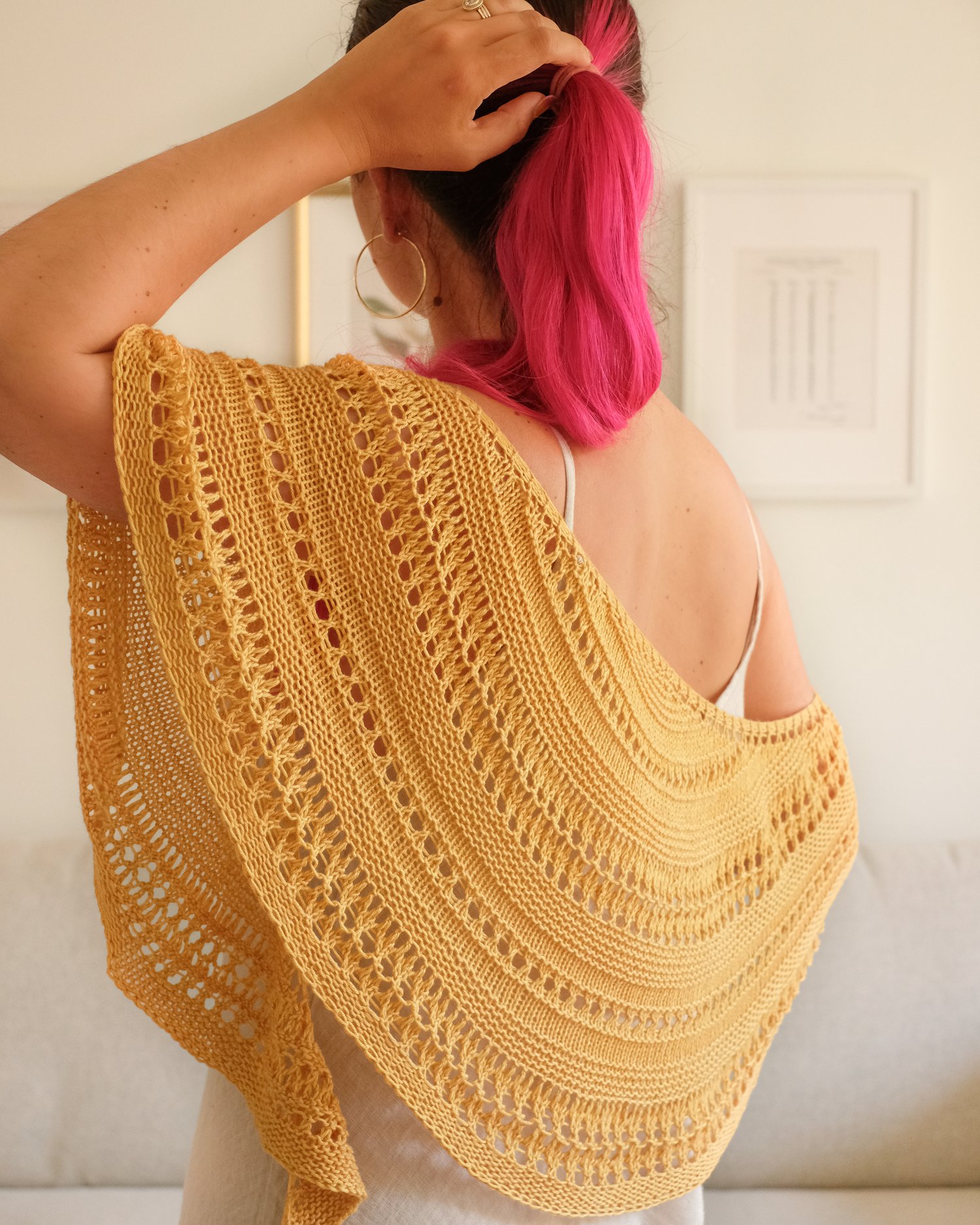 Like a golden moon rising on a warm summer night, Honey Crescent Shawl is light, luminous, and quietly striking. Inspired by the honey moon — the magical full moon of early summer — this design is a celebration of warm weather knitting.