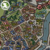 Hi res images in full watercolour or parchment filtered of the city of Haut-Navalle in Varlam on the world of Rune. The key on the sides gives place names for all the important buildings and a lot of the minor ones too: shops & businesses, Taverns and Inns, clubs and services