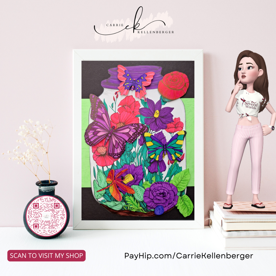 Both books use glass jars as a metaphor representing isolation, depression, and obstacles within life. In typical MSW fashion, I've added plenty of whimsical florals and butterflies to showcase freedom within chaos and beauty from pain.