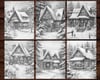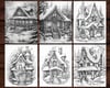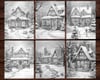 27 Christmas Homes Coloring Page Book, Adults + kids Instant Download Grayscale Coloring Page, Printable PDF Festive Houses, Cute Homes