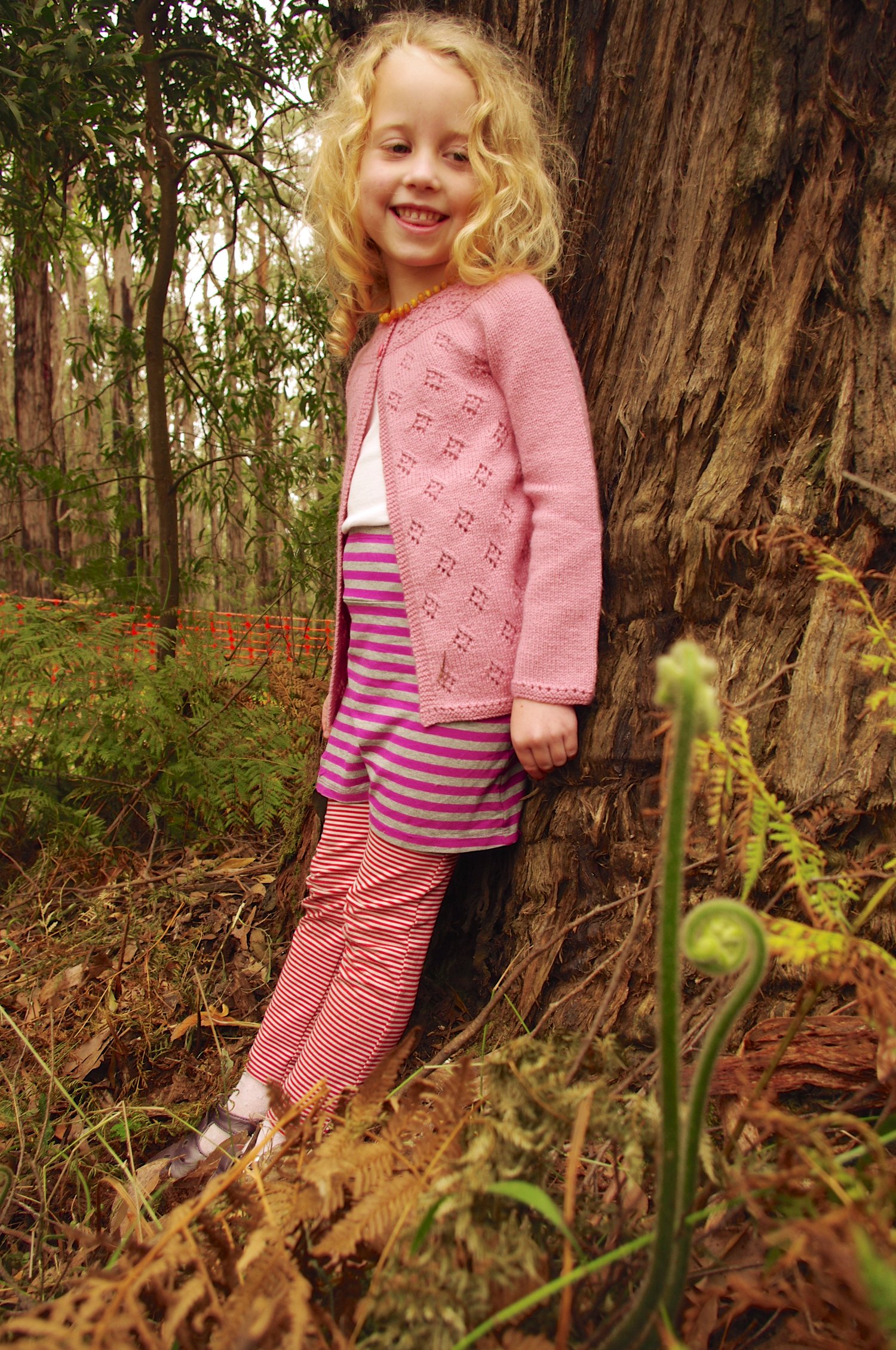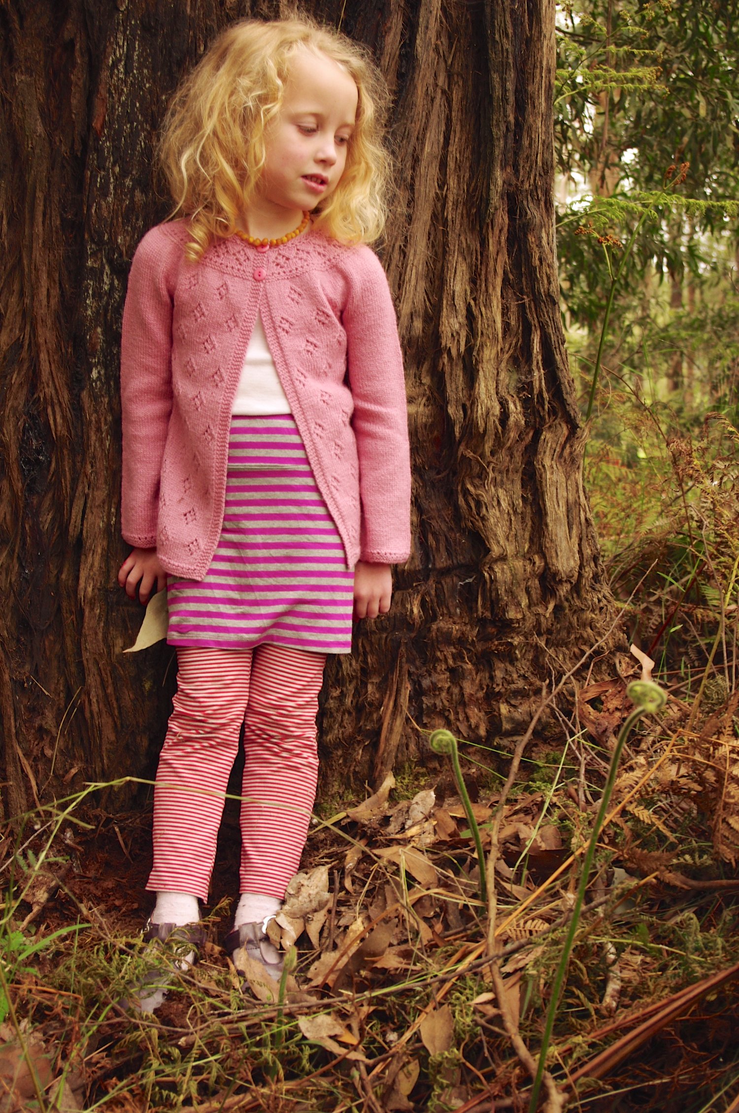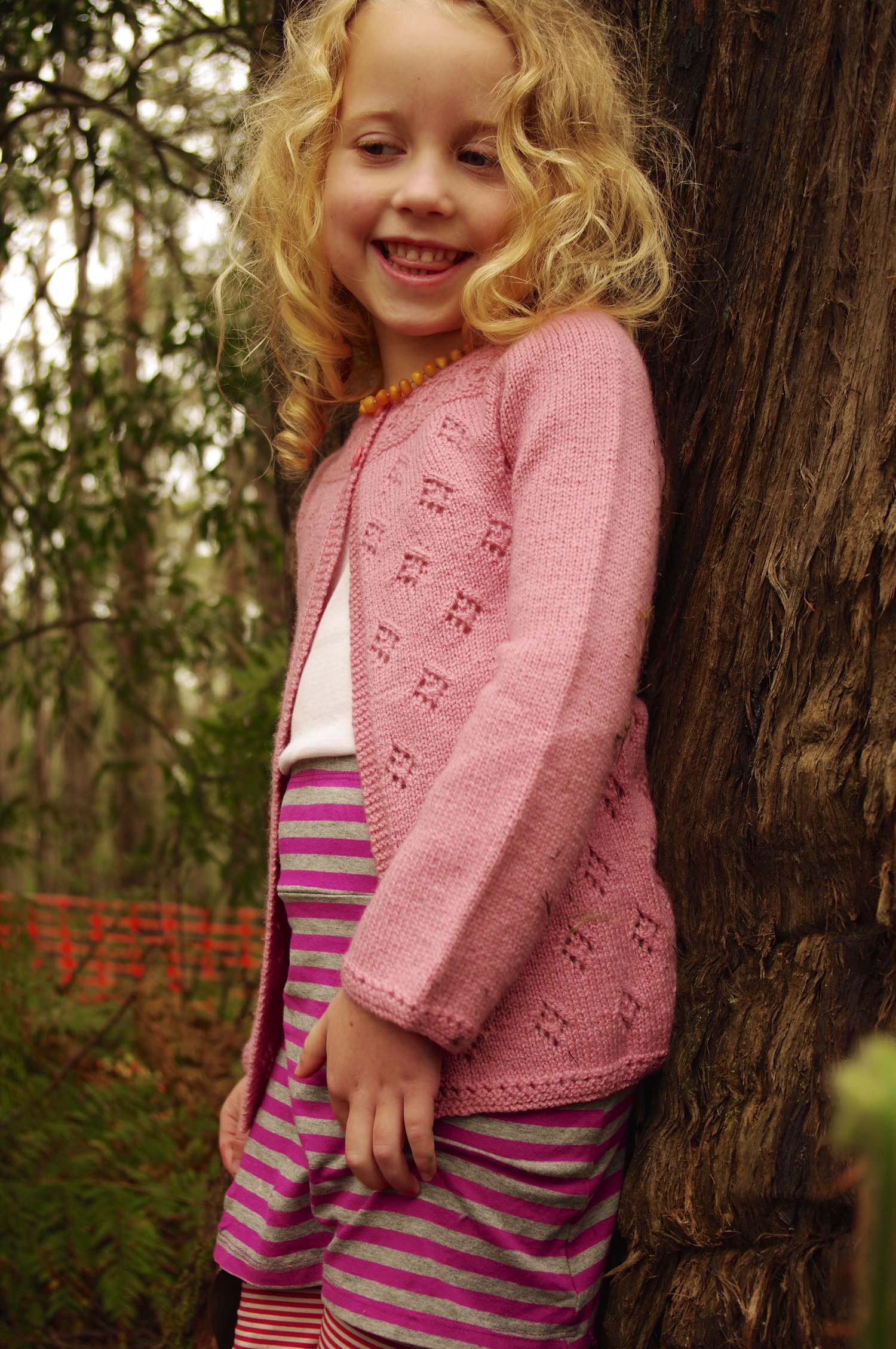 Sample shown is the 21” size knit to a 5 year length on a 5 year old with a 21” chest.