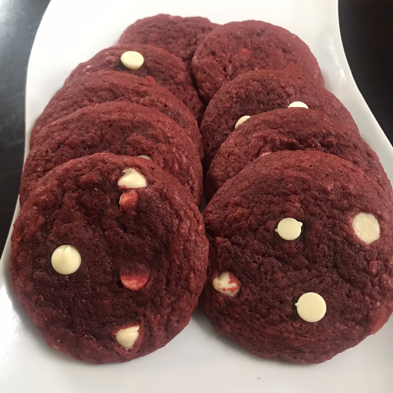 Our Red Velvet Cookies are a soft, chewy twist on the classic Southern favorite. Each cookie is baked deep-dish style, rich with that signature red cocoa flavor and studded with creamy white chocolate chips for the perfect balance of sweetness.