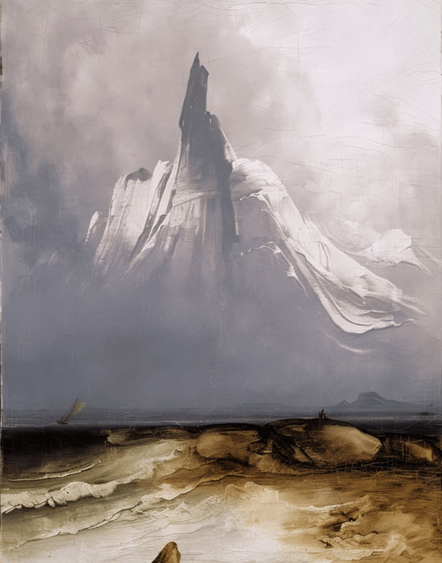 Sea of Fire Painting, Vintage Mountain Landscape, Nostalgic Nature, Cool Nature, Rustic natural Landscape, Painting.
