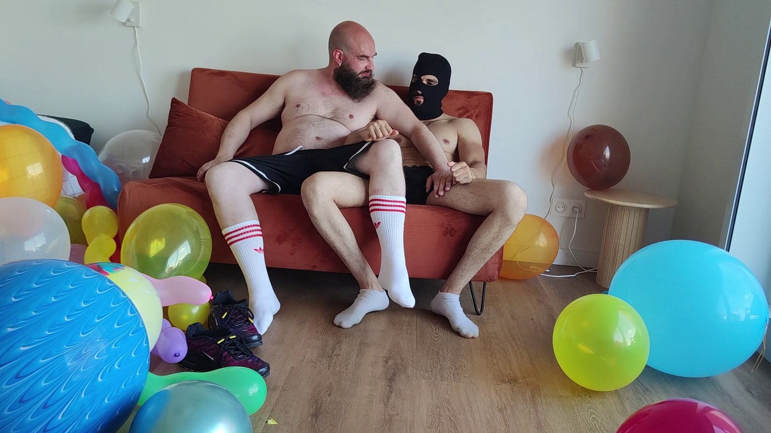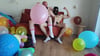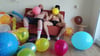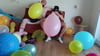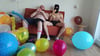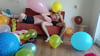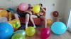 he start with the yellow one and the pink for me, them we exchange our balloons.