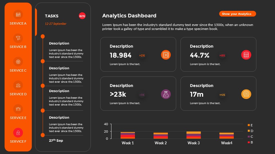 Features of the Analytics Dashboards PowerPoint Presentation Template: