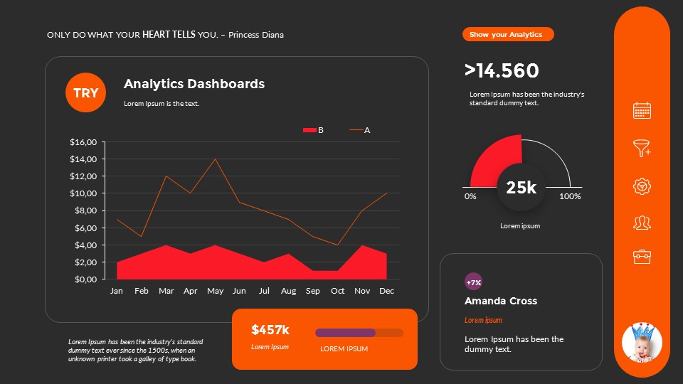 Please, use the Analytics Dashboards PPT! Analytics Dashboards PPT are slides collection that in easy way compiling data and visualising trends.
