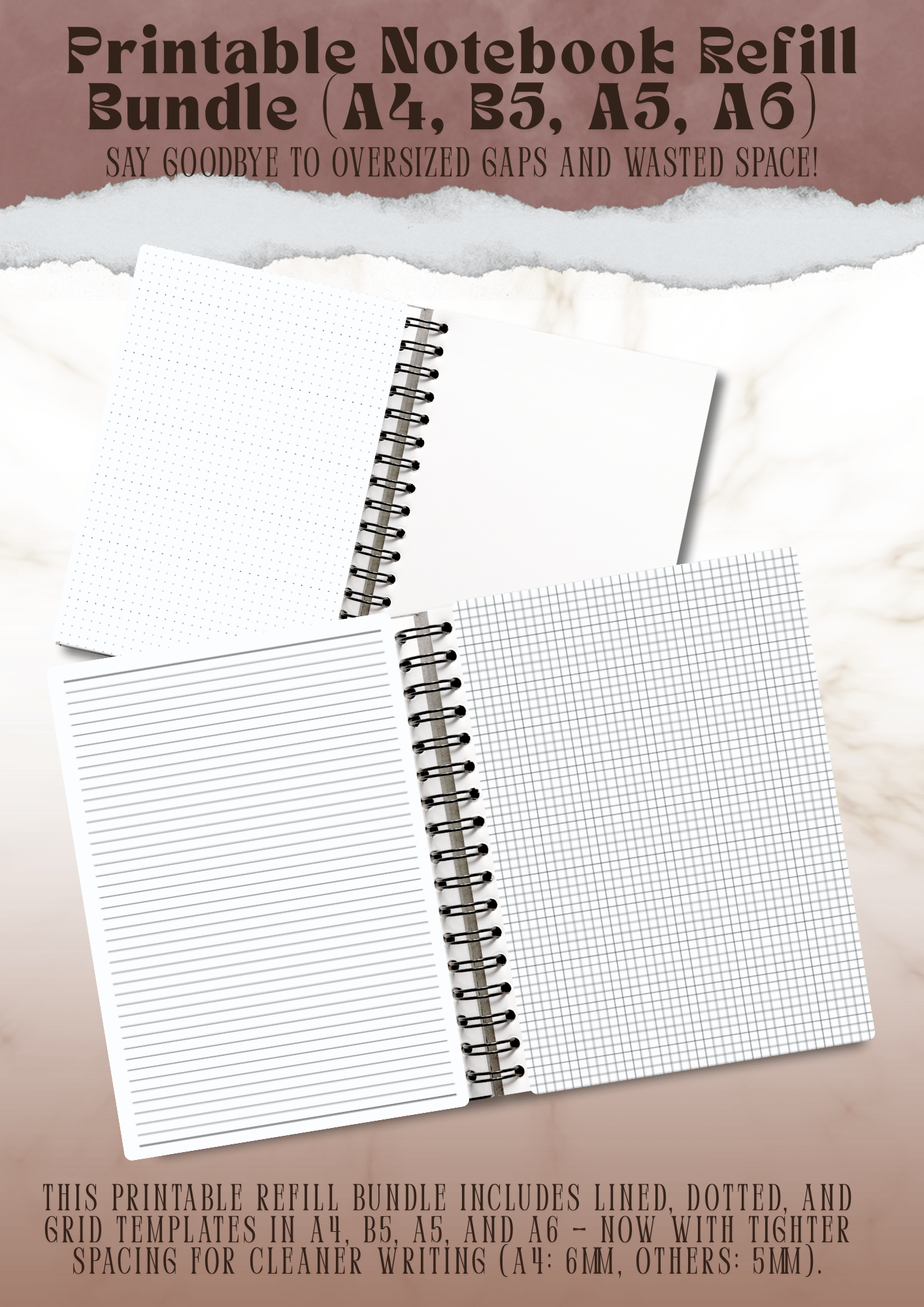 Printable Notebook Refiller Bundle - A4, B5, A5 & B6