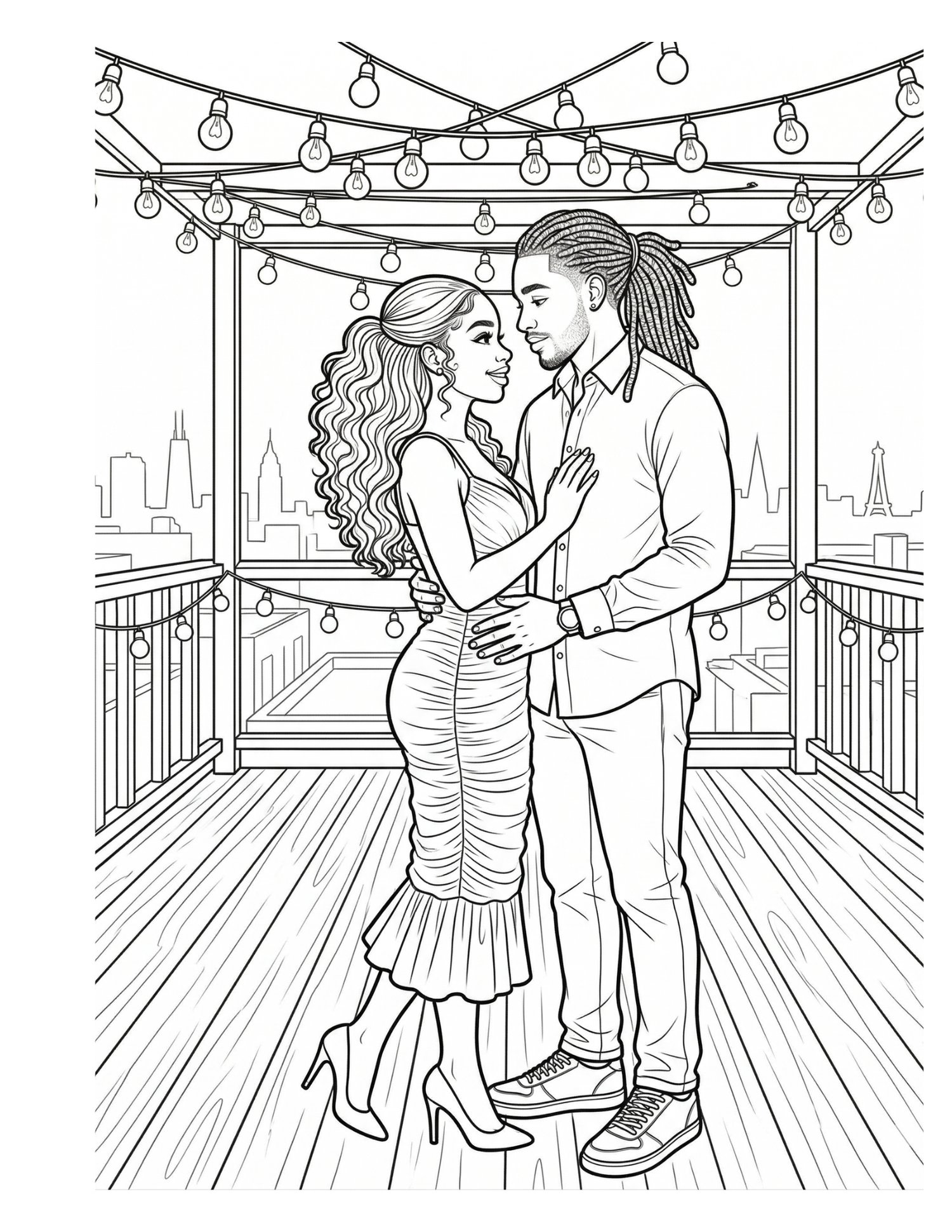 A quiet outdoor moment under the lights. This is a digital coloring page — instant download, printable, yours to use today. It’s a preview from the full book available on my Payhip here. Nothing ships; everything downloads.