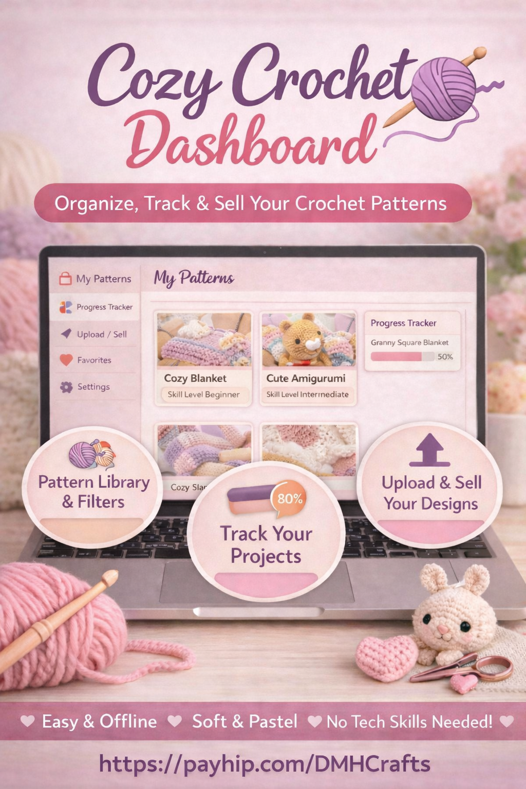 Cozy Crochet Dashboard – Offline Pattern & Project Organizer (Desktop)