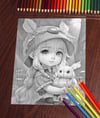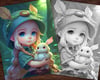 Gnome Sweetie Girl #1 Fairy Fantasy Anime Coloring Page, Adults + kids Instant Download - Grayscale Coloring Page Printable PDF