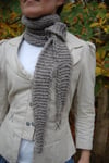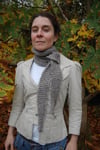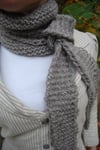 It features an interesting little looped edging to the garter stitch body and is buttoned at the back with 3 buttons so that you don’t have to re-tie your artfully arranged tie.